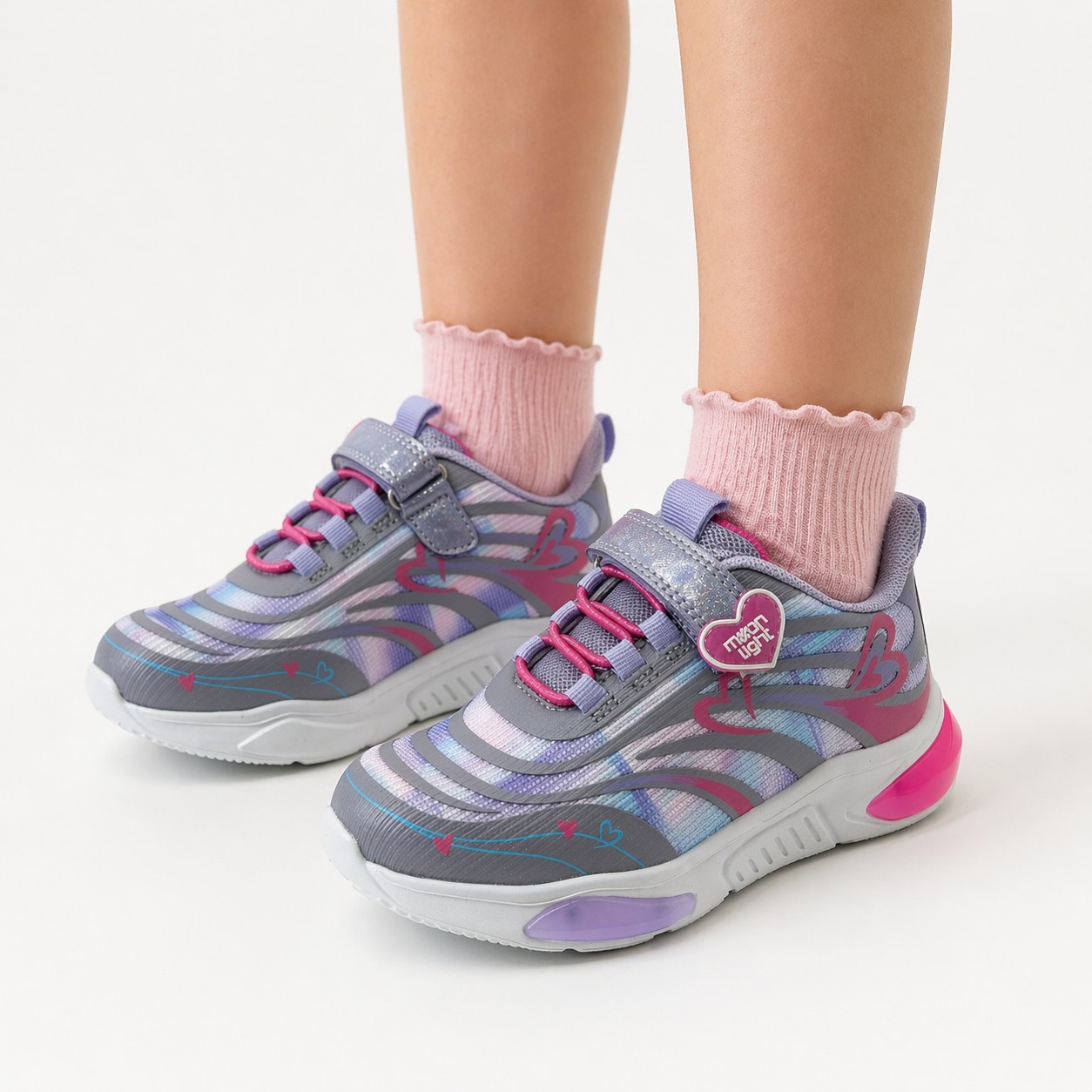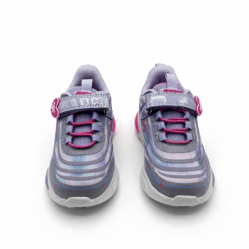 Detské tenisky Beppi 2220420 zaujmú na prvý pohľad jemným, no zároveň hravým dizajnom v kombinácii sivej, ružovej a fialovej farby. Vlnité línie, srdiečkové motívy a farebné detaily dodávajú obuvi moderný dievčenský vzhľad, ktorý krásne oživí každý outfit. Tento model je ideálny na bežné nosenie do školy, škôlky aj na voľný čas.