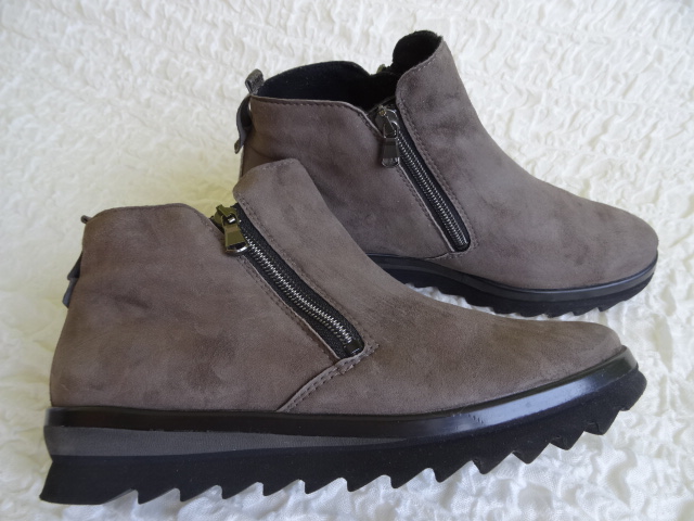 Sú ľahučké a kvalitné, zapínanie na zipsy aj z vnútornej aj z vonkajšej strany, takže sú vhodné aj pre dámy so širšími nohami - ľahko sa obúvajú. Podrážky sú gumené, vrúbkované.