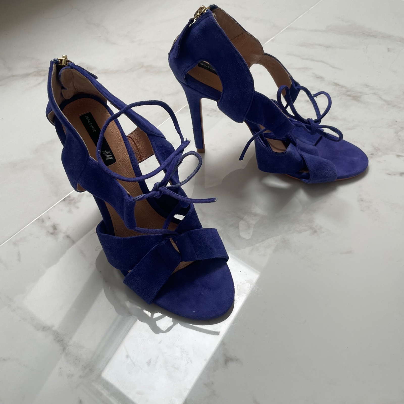 H&M Premium kráľovsky modré semišové lodičky