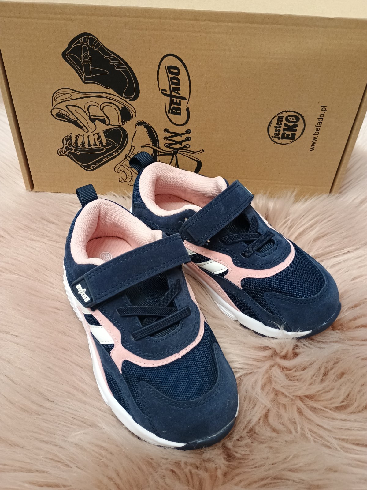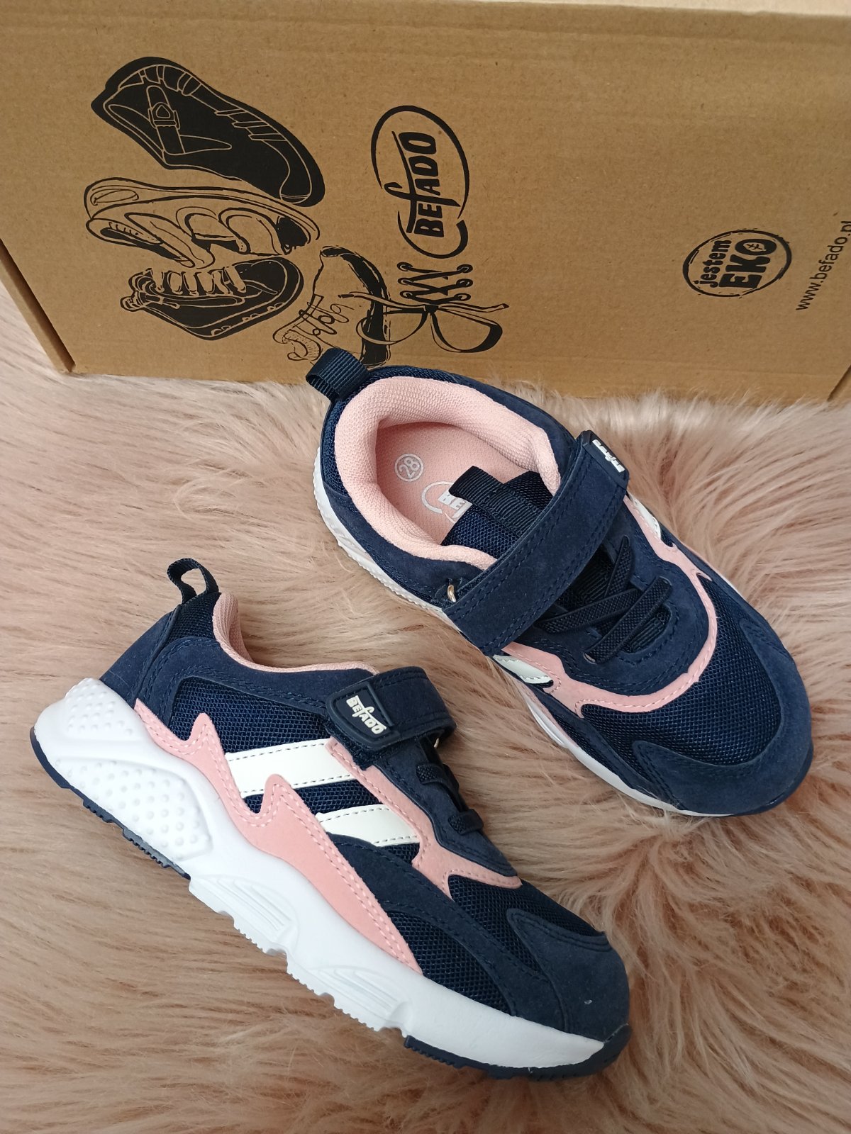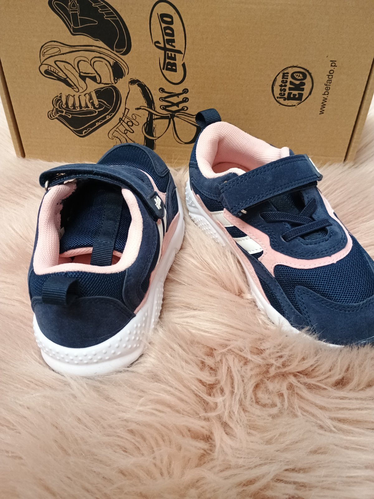 Dievčenské tenisky od značky Befado v zaujímavej a peknej dievčenskej farebnej kombinácii. Zapínanie je veľmi praktické. A to na suchý zips a šnurovanie, vďaka čomu sa vie dieťa jednoduchšie obúvať a vyzúvať a prispôsobiť tenisky k šírke chodidla. Vyvýšená a mäkká podrážka tlmí nárazy a ochraňuje chodidlo pred otrasmi. Zvršok je vyrobený zo syntetického materiálu. Pekný dievčenský a trendy dizajn sa jednoducho kombinuje. Tenisky sú vhodné na každodenné nosenie a voľnočasové aktivity.