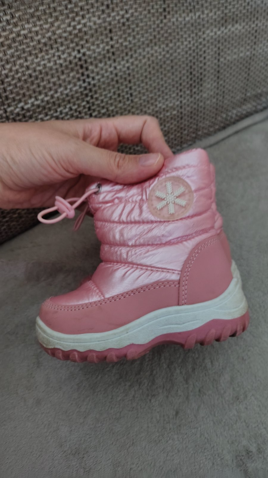 Predám v peknom stave zimné topánky pre dievčatko, ľahké, ohybné, veľmi dobre sa nosili. Vpredu je špička trošku šuchnutá, ale nakoľko je to čierne, nie je to vidno. Chutná dĺžka cca 11 cm.
