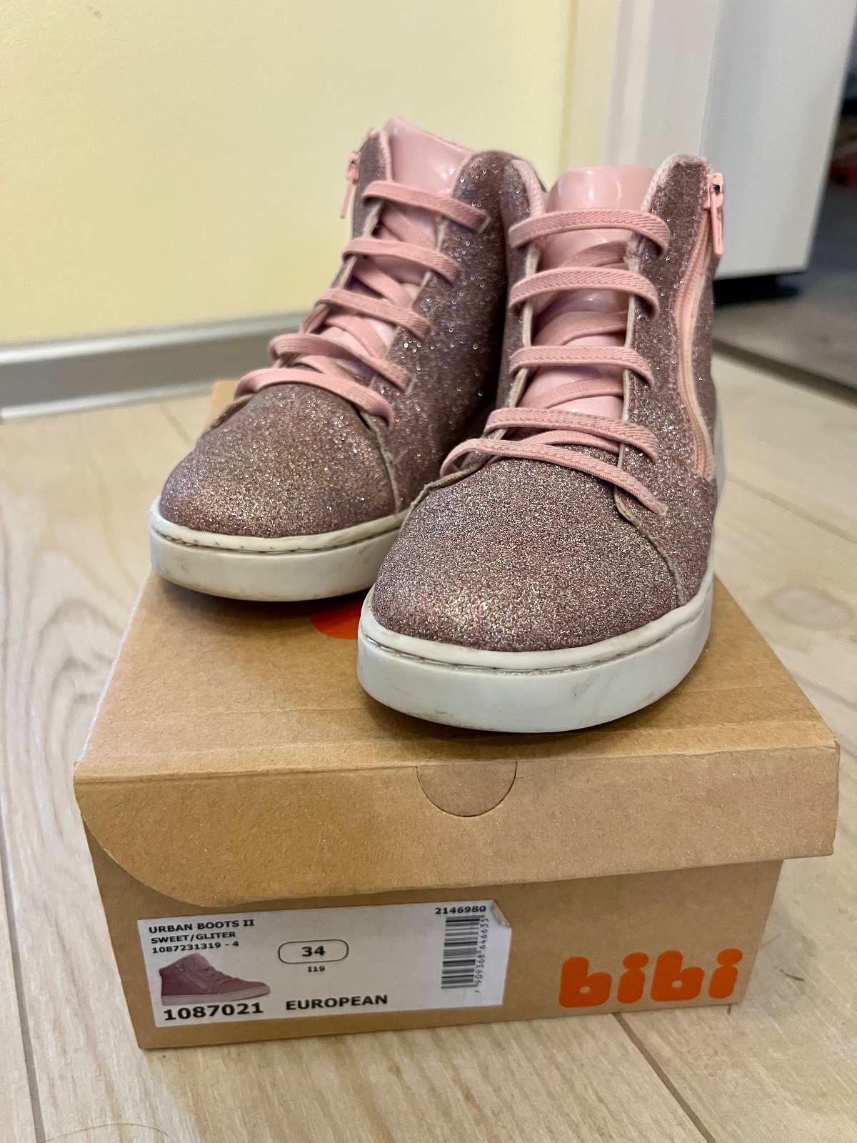 Trblietavé ružové vyššie tenisky Bibi 34, VD cca 21,5cm, nosené len chvíľu na jar, rýchlo vyrástla noha, PC 48,90€