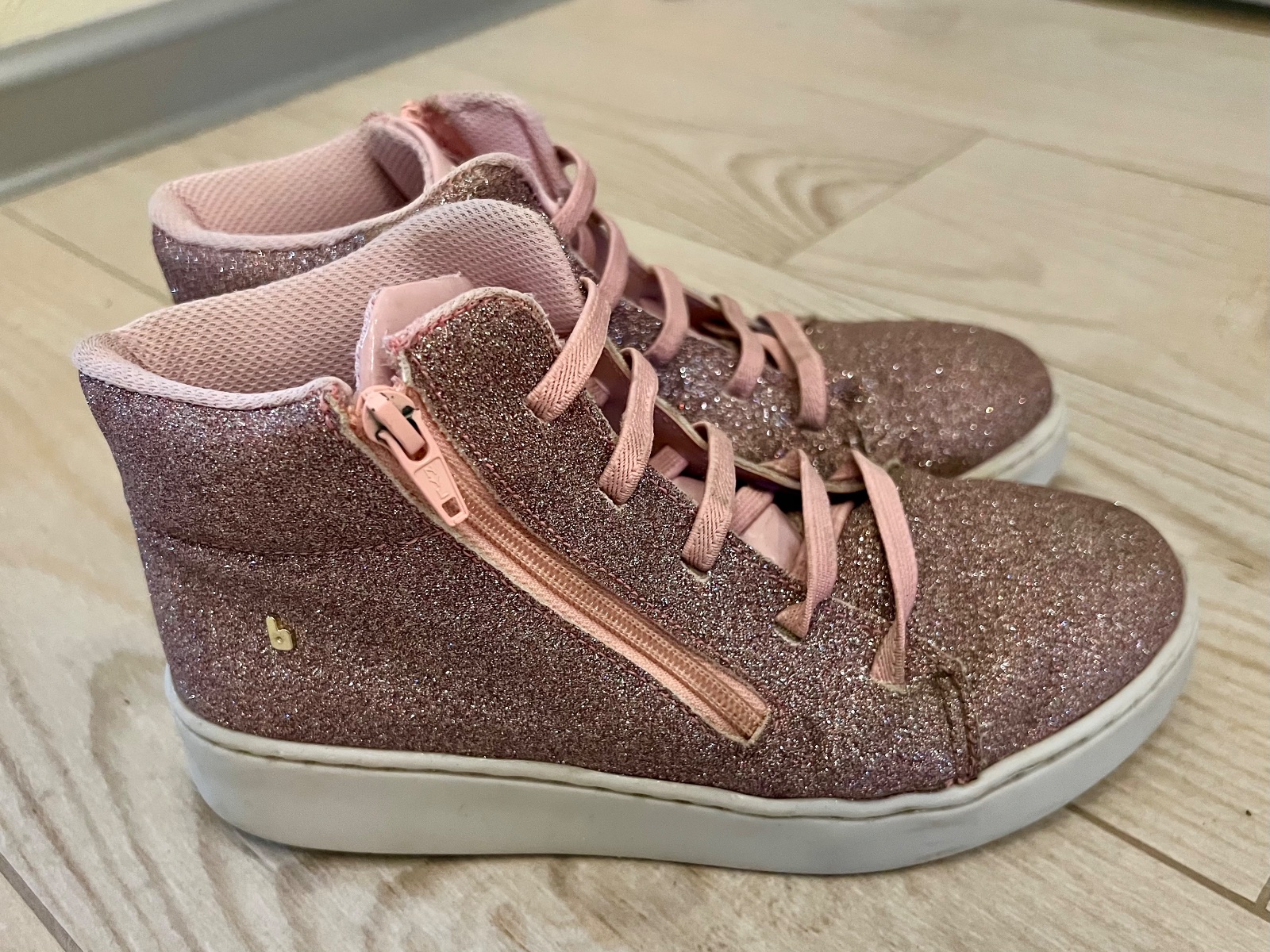 Vysoké čierne glitrované topánky s trblietkami. Topánky sú s naťahovacími šnúrkami a bočným zipsom pre jednoduchšie obúvanie. Priedušné stielky s fyzioflex pomáhajú nohe dýchať a zaisťujú pohodlie. Majú ľahkú podrážku, ktorá zabraňuje pošmyknutiu. Vyvinuté v rámci fyziologického konceptu „Prirodzené ako chôdza naboso“.
