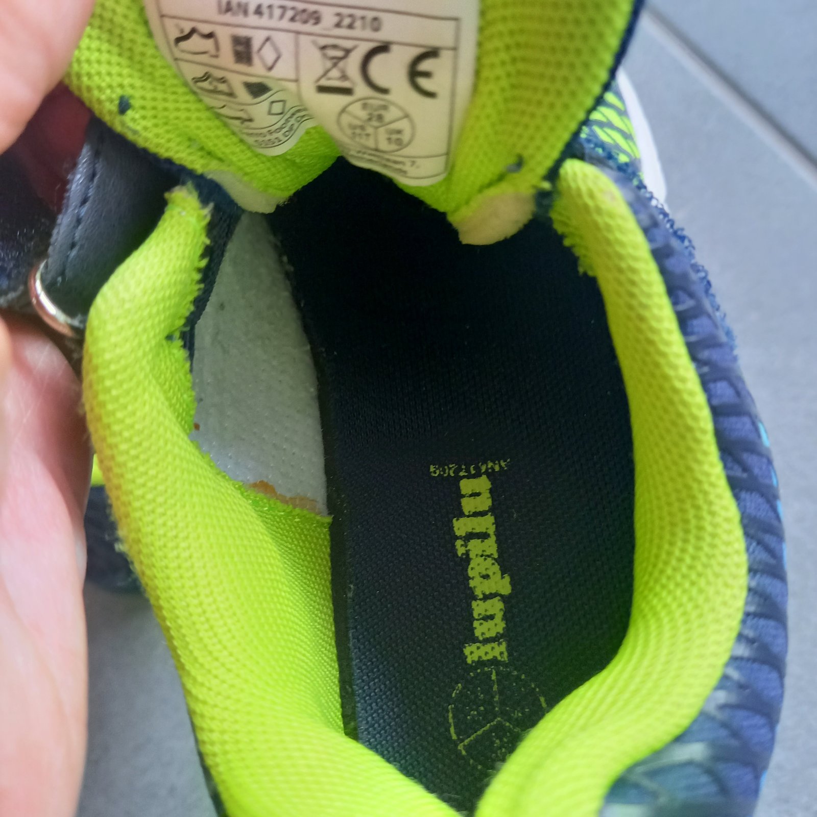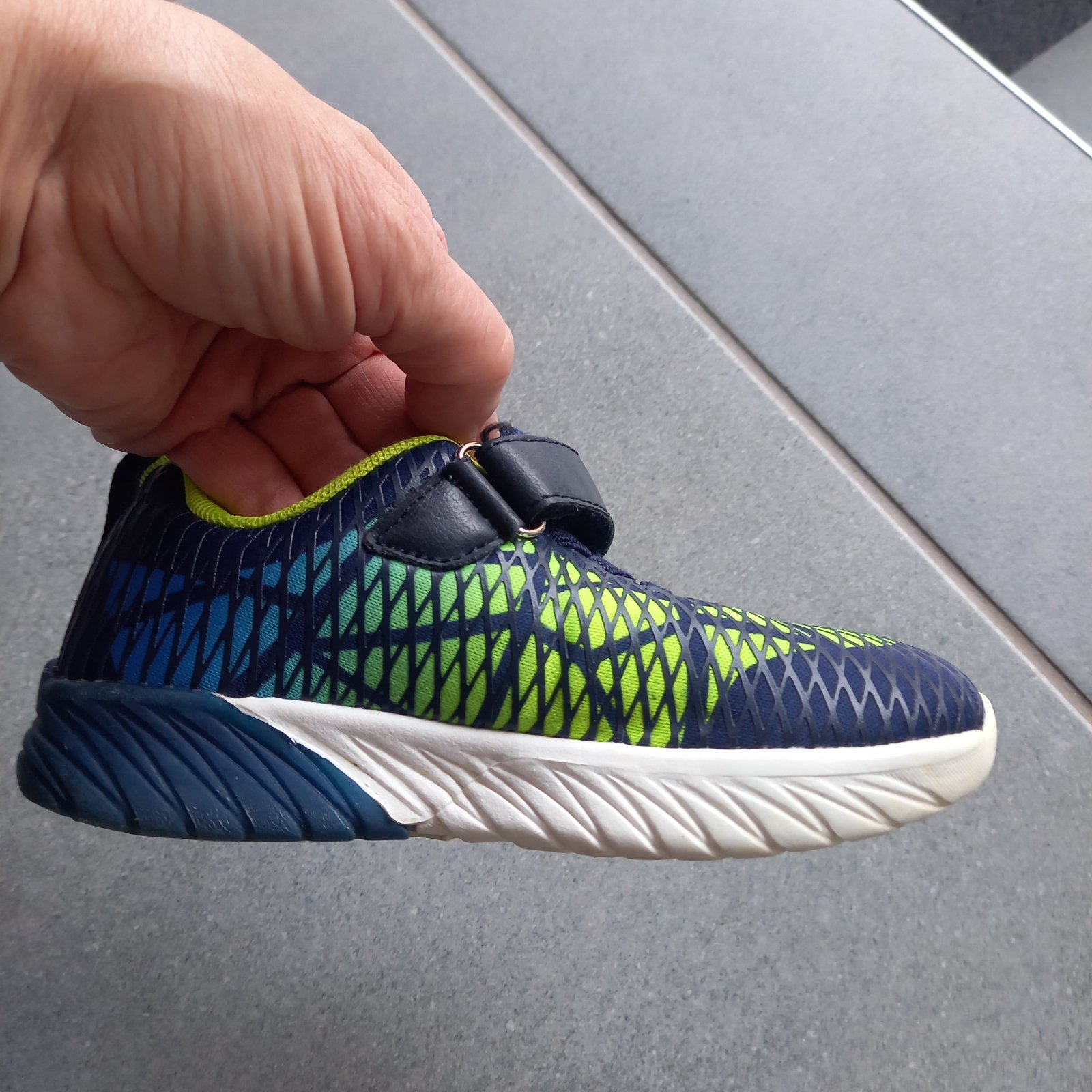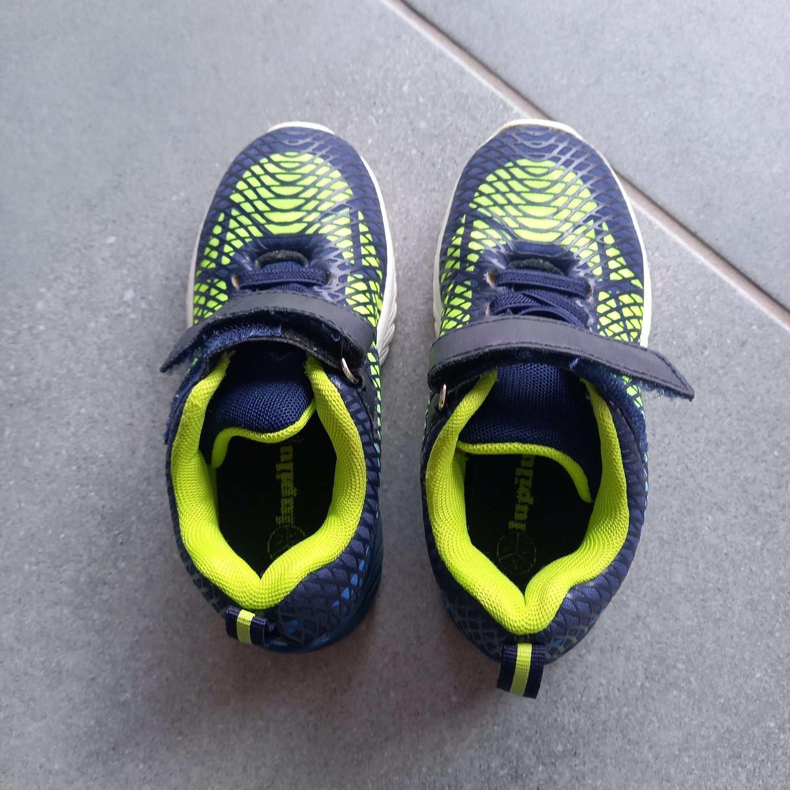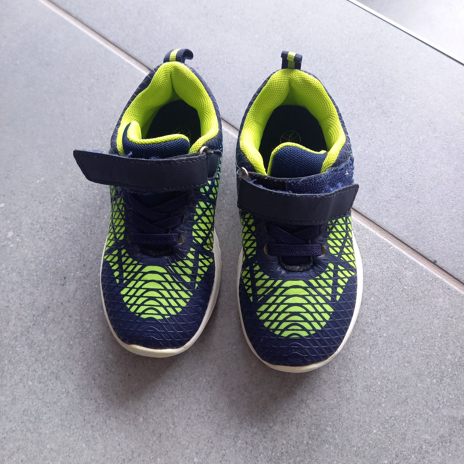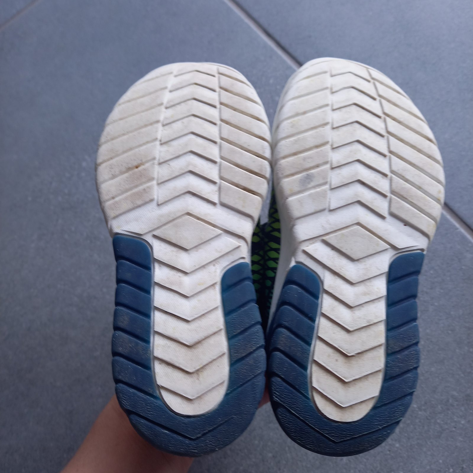 Predám nosené tenisky v.28, vonkajšia strana bliká na bielo (funkčné na oboch teniskách). vložky sme menili, nakoľko pôvodné sa dosť rýchlo rozpadli - teraz sú tam biele froté vložky. špičky čiasto...