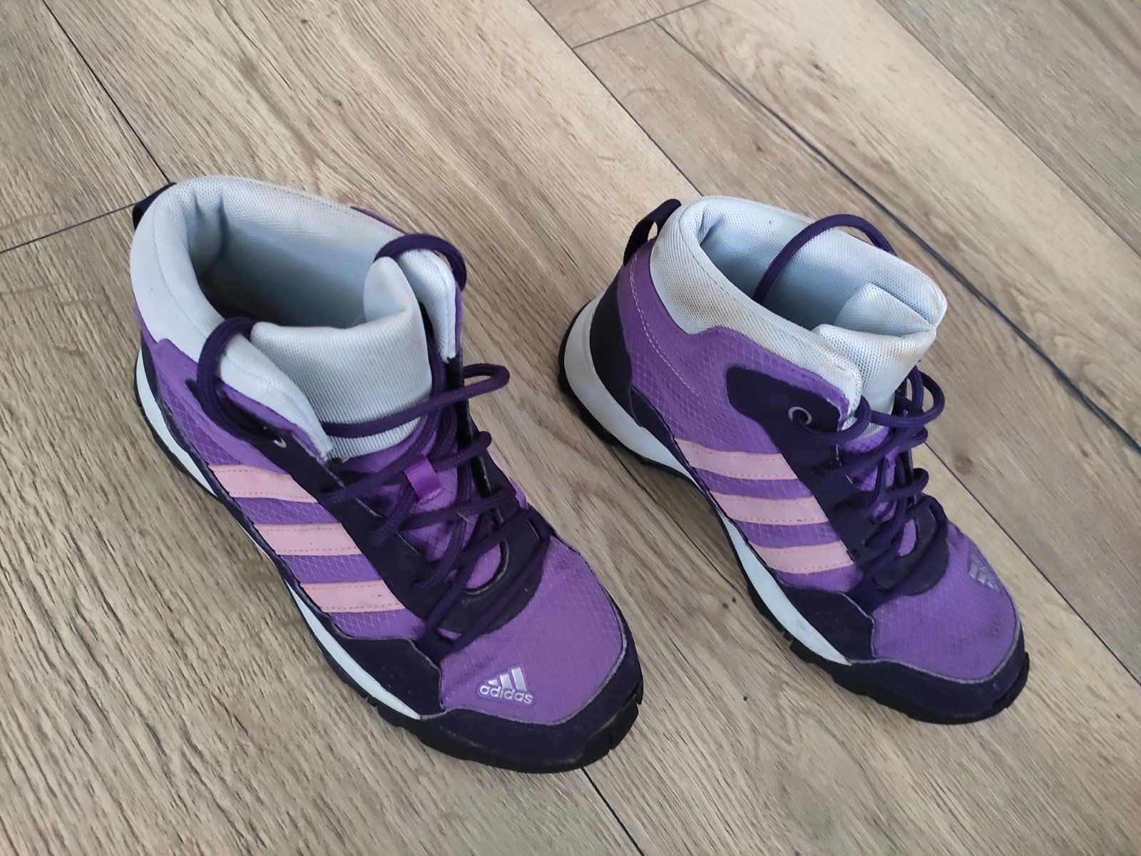 Tenisky len po mojej dcére, farba pastelová fialová. Majú malé chybičky krásy (viď foto) vidieť len z blízka. Zohľadnené v cene.