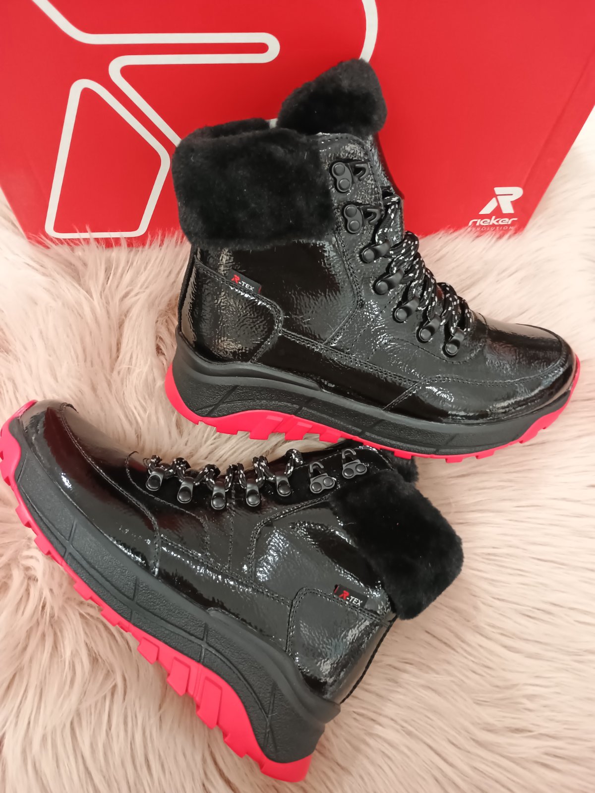 Zostaňte v teple celú zimu s topánkami od Rieker. Táto zimná čižma vhodná aj do snehu je vyrobená vysokokvalitným koženým lakovaným zvrškom a má klasický dizajn na šnurovanie. Stielka je z jahňacej vlny s tex-ovou podšívkou a bočným zipsom pre ľahké obúvanie a vyzúvanie. Tieto štýlové topánky majú gumenú podrážku a 30 mm vysokú podošvu. Udržujte pohodlie a zároveň vyzerajú štýlovo.