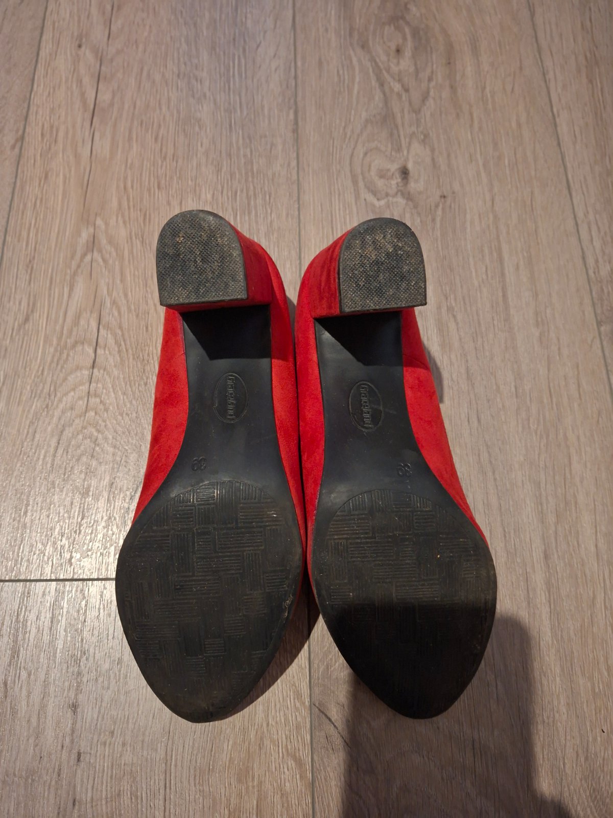 Boli bežne nosené do práce, no už nemôžem tento typ. Teraz som si všimla odlupene dole na opätku, čo takmer vďaka čiernej topánky nevidno. Mierna platforma, krabica.