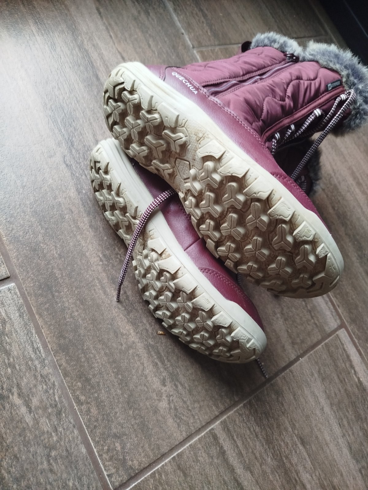 Nosené jednu zimu, na rýchloupínanie, nepremokavé, syn mal vnútri ortopedickú vložku, čiže tá čo je k nim originál nebola ani použitá, dĺžka vnútornej vložky 24,5 cm. Jediná chybička,že sa odtrhla ...