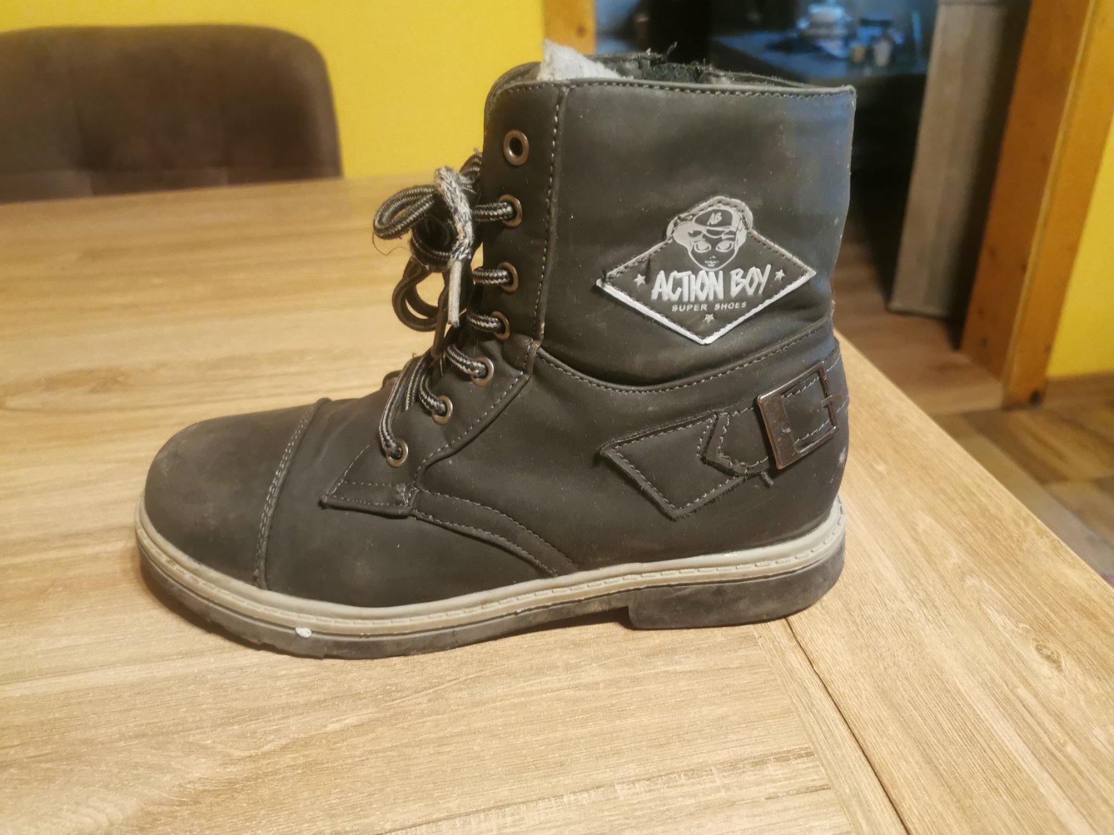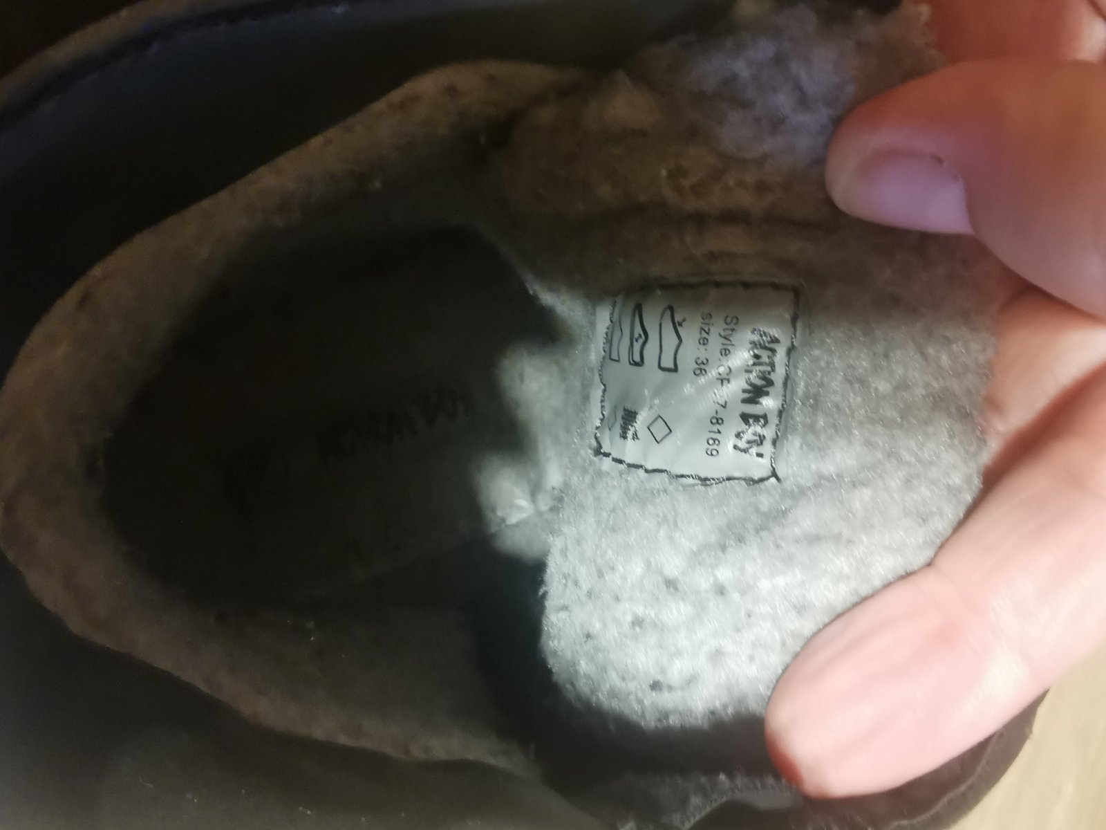 Čižmičky na prechodné obdobie, prípadne teplejšiu zimu. Vpredu šuchnuté (viď foto), zohľadnené v cene. Vnútro jemnučký plyš. Vn. dĺžka 23,2cm. Obyčajné poštovné - 2€.