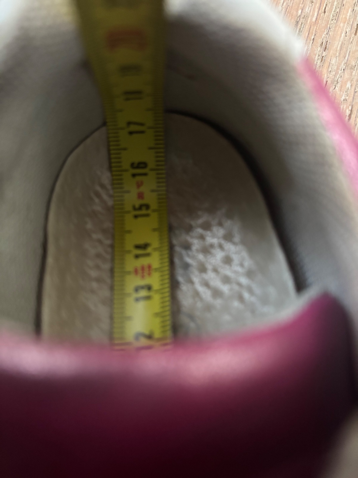 Tenisky su celokozene. Maju bezne drobne znamky pouzivania jednym dietatom jednu sezonu nosene na striedacku. Su trblietave, fotka trochu skresluje predok. Nie su ani vychodene, ani okopane, ani vydrete. VD je 17 cm