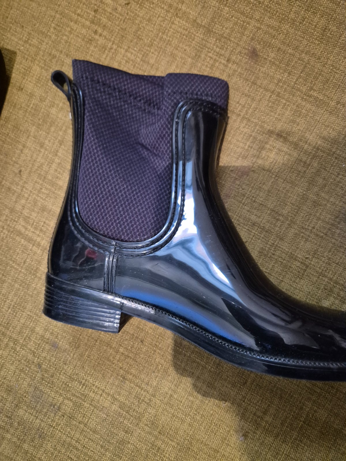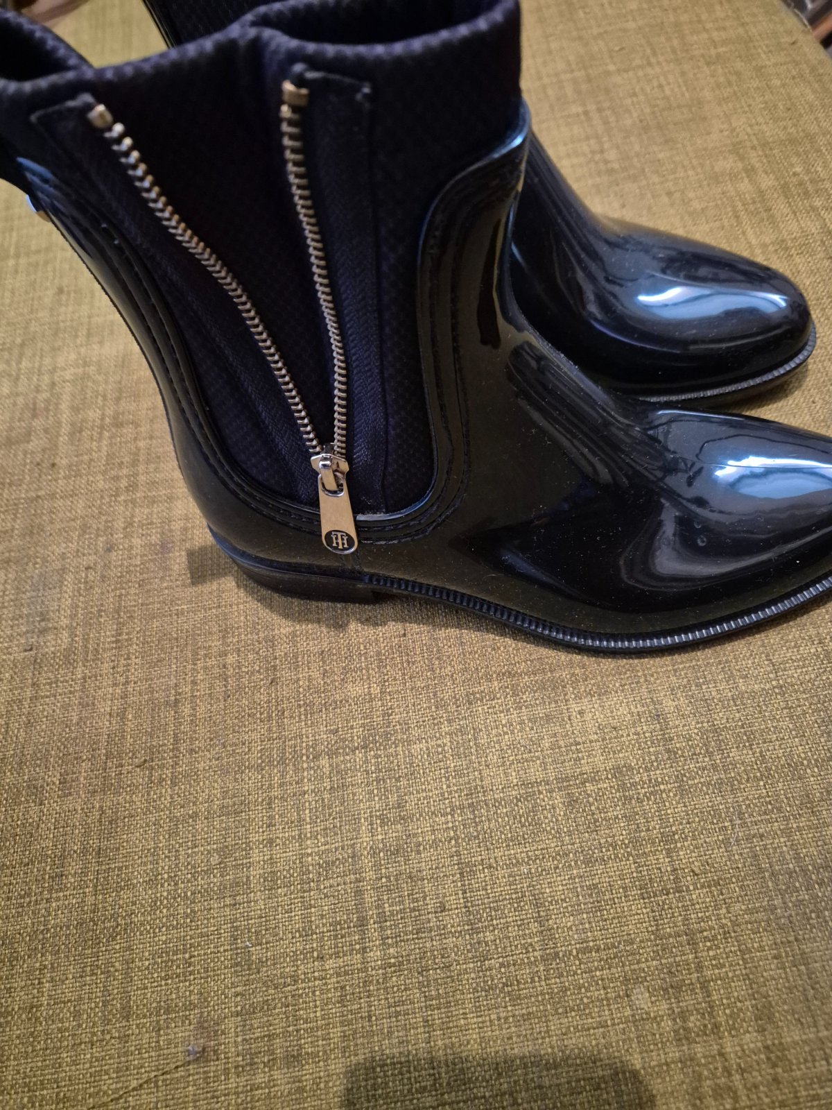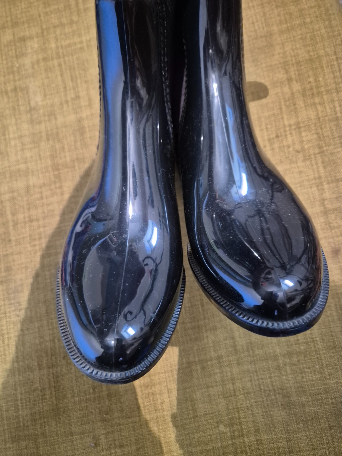Lesklé čierne zateplené gumáky, veľmi dobrý stav, málo nosené. Cena 30 s packetou.