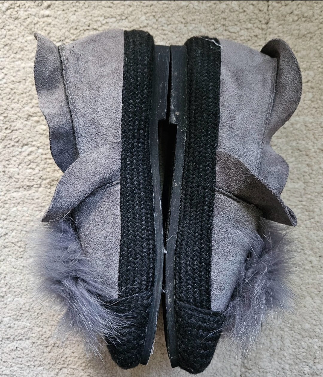 Sivé pohodlné topánky s kožušinovym brmbolcom, veľkosť č. 38.