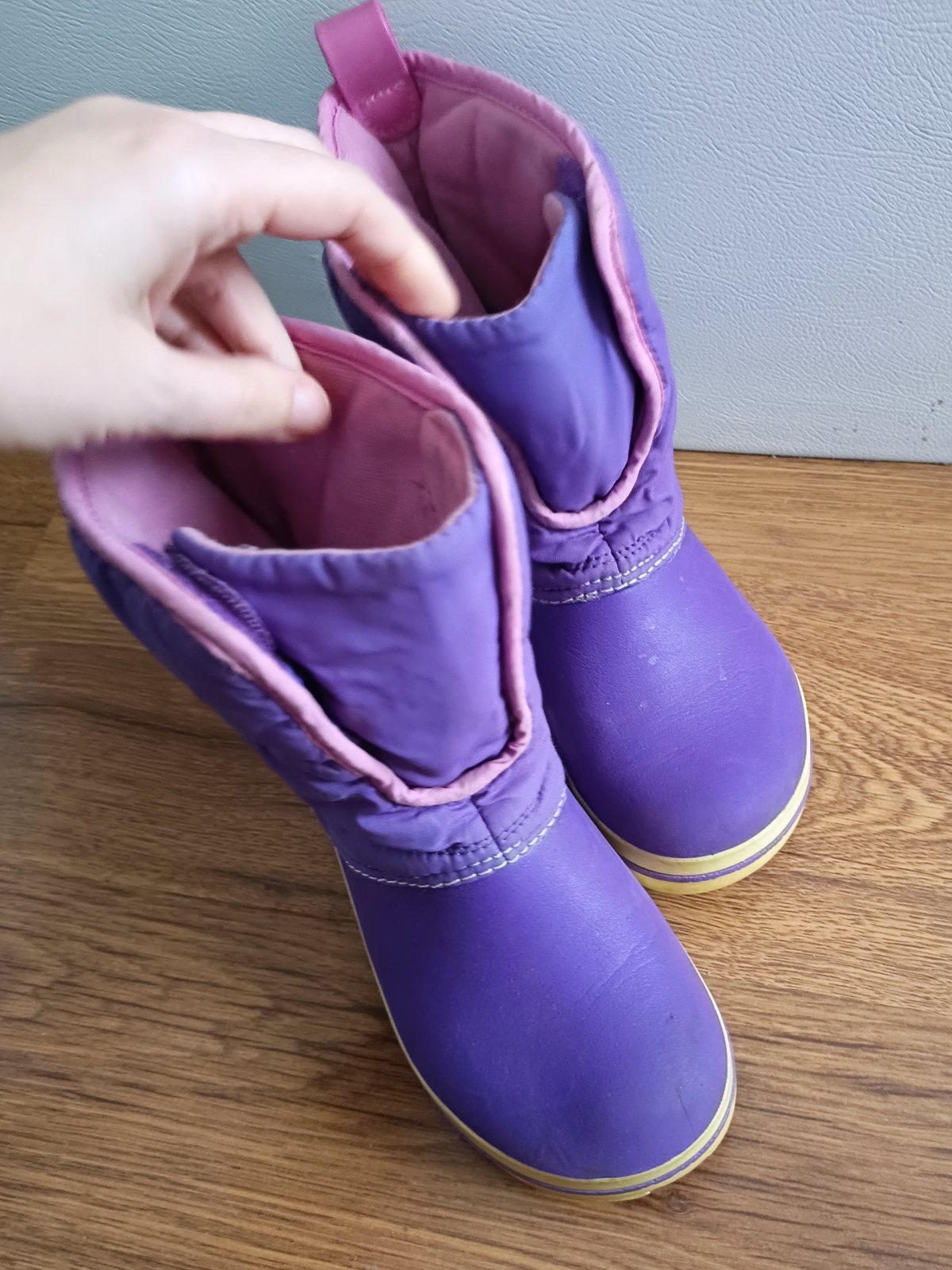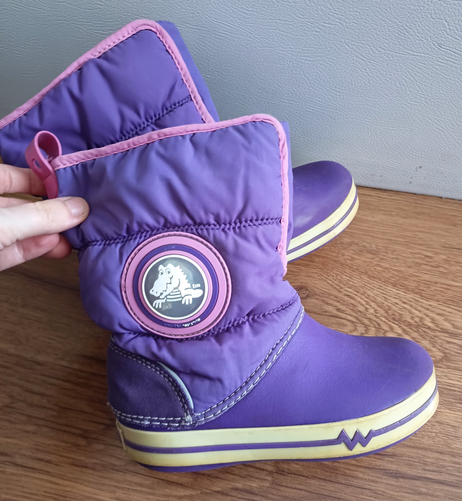 Predám snehule crocs vo velmi dobrom stave,nosené mojím synom jednu sezónu na striedačku s inými topánkami. Jediná chybička je dole v zadu na jednej čižme je zošúchaný nápis crocs. Všetko je nafote...