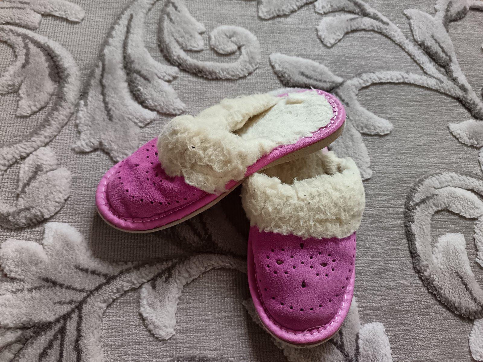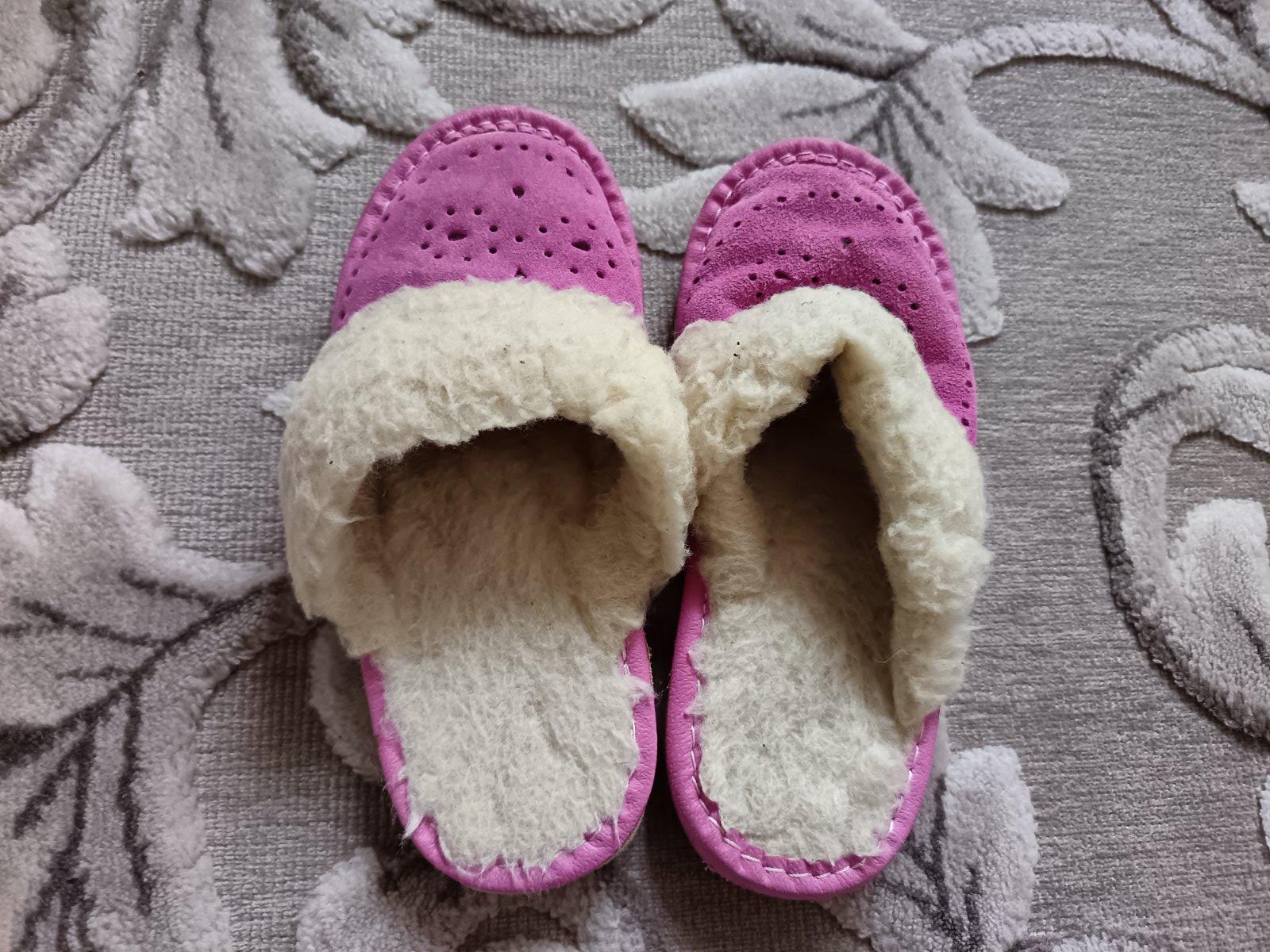 Predám detské papučky pre dievčatko. Z vnútra sú oteplené a sú z pravej kože. Vnútorná dĺžka je 18,5cm. Cena je bez poštovného. Tovar nevymieňam za iný!