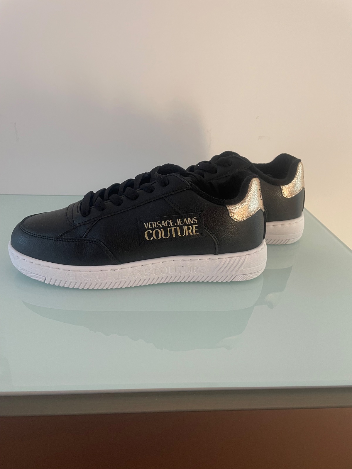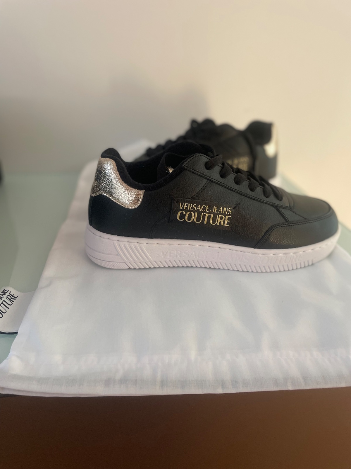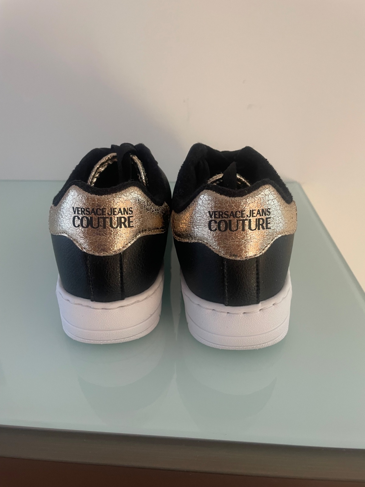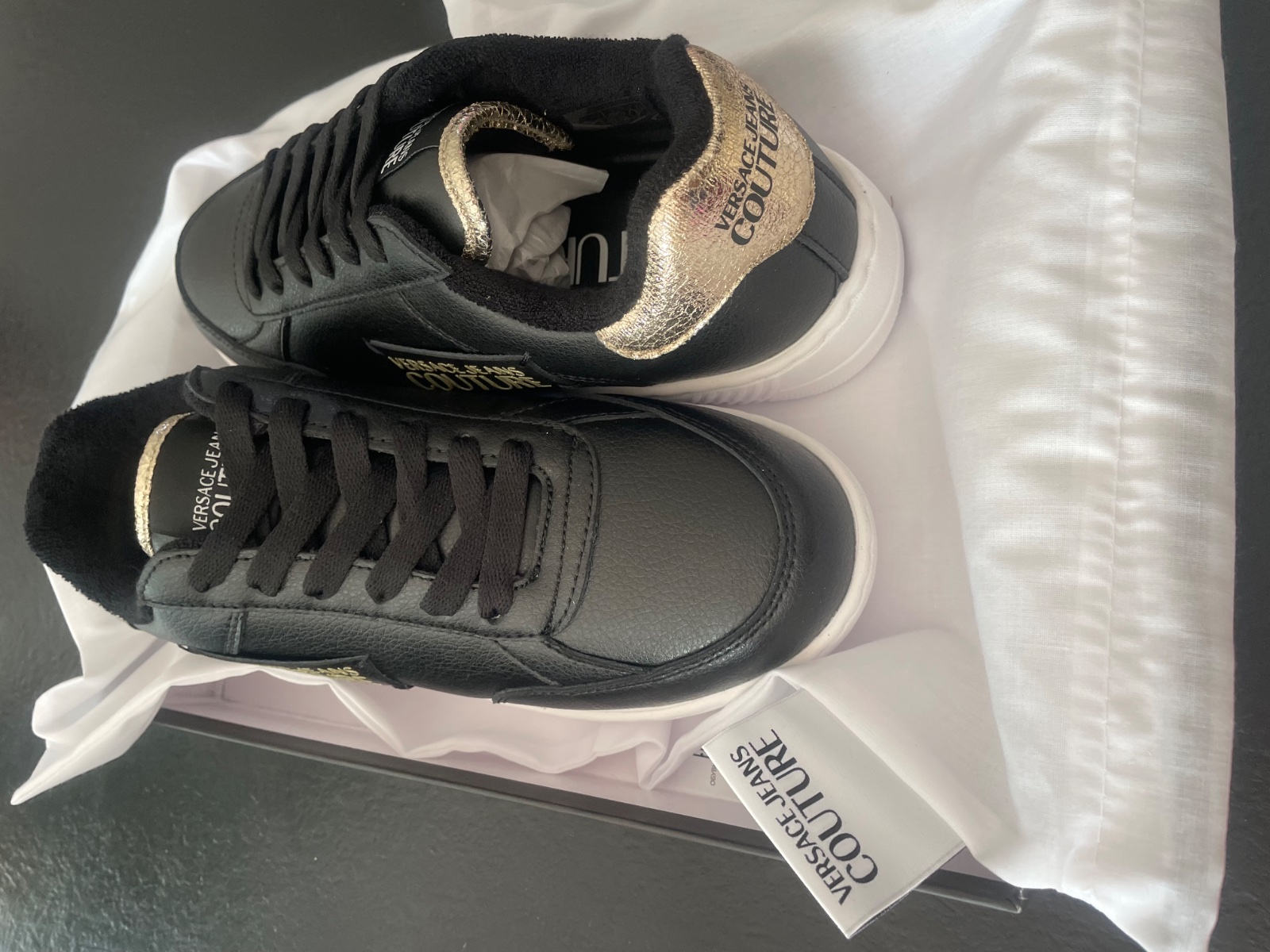 1 x obuté Tenisky luxusnej značky. Originaly zabalené v krabici aj s dustbagom. Materiál koža/ syntetika. Čierna kombinovaná so zlatou. Na podrážke nápis značky. č.39 Poštovné 5,80.-