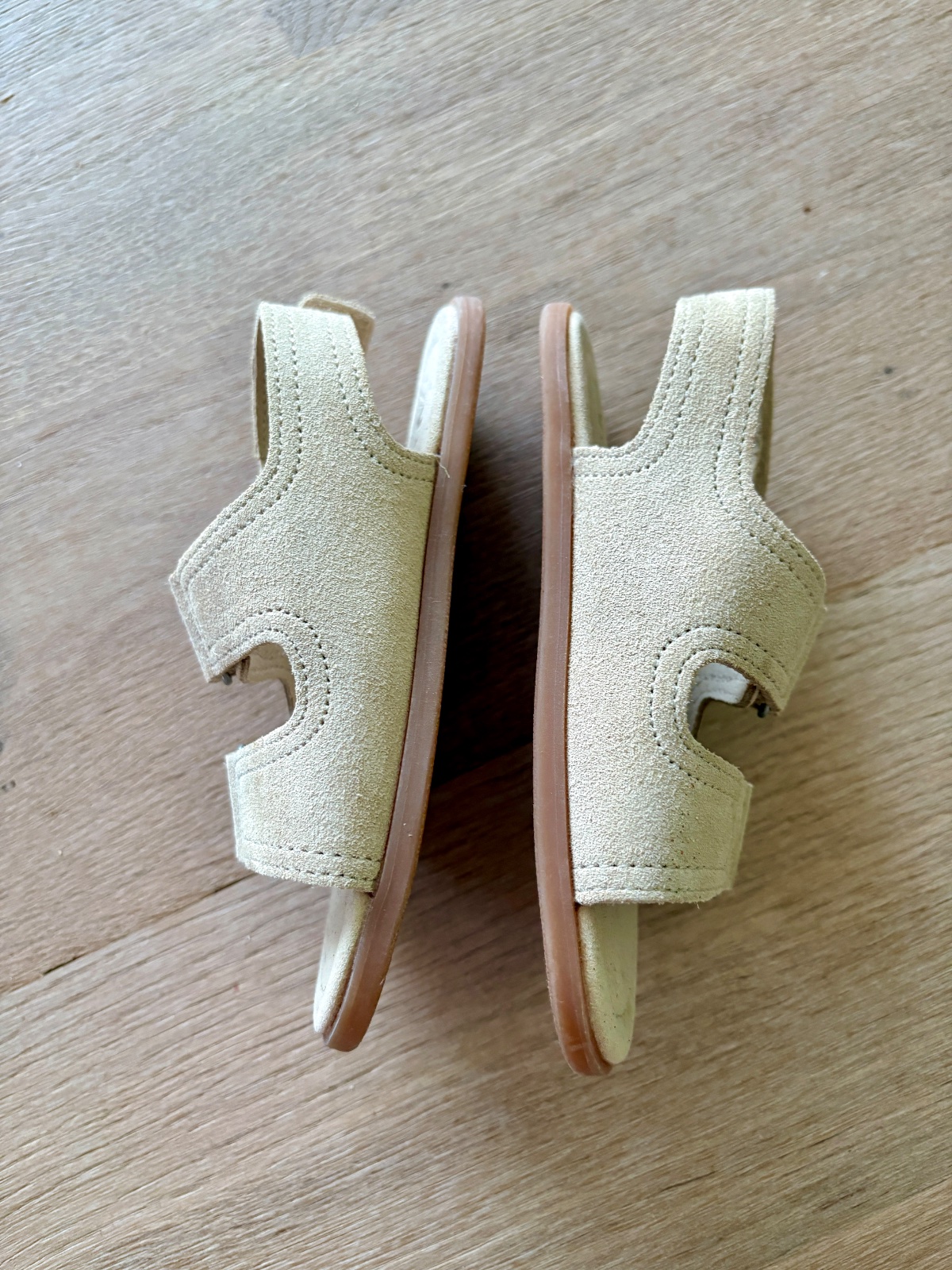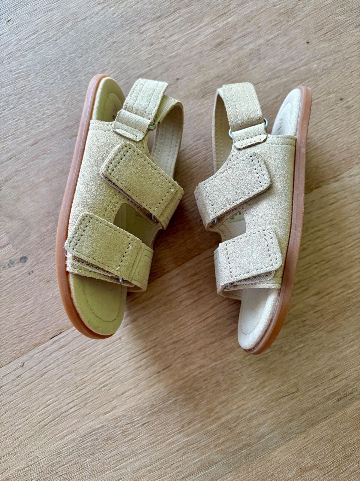 Sandalky vo výbornom stave, vnútorná dĺžka je 16cm, po ten šev vpredu je 15,5cm, šírka je 6,7cm, sú riešené ako žabky vpredu medzi prsty a zapínajú sa na suchý zips na členku. Iba 1x obuté vo vnutr...