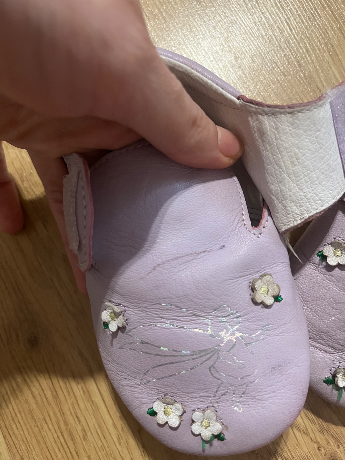 Kožené capačky D.D.step veľkosť L/22-23. Kupované nové, nosené krátko jedným dieťaťom po interiéri. Veľmi dobrý stav, neschodené, bez chýb. Pri detailnom preskúmaní vidno naozaj malé známky noseni...