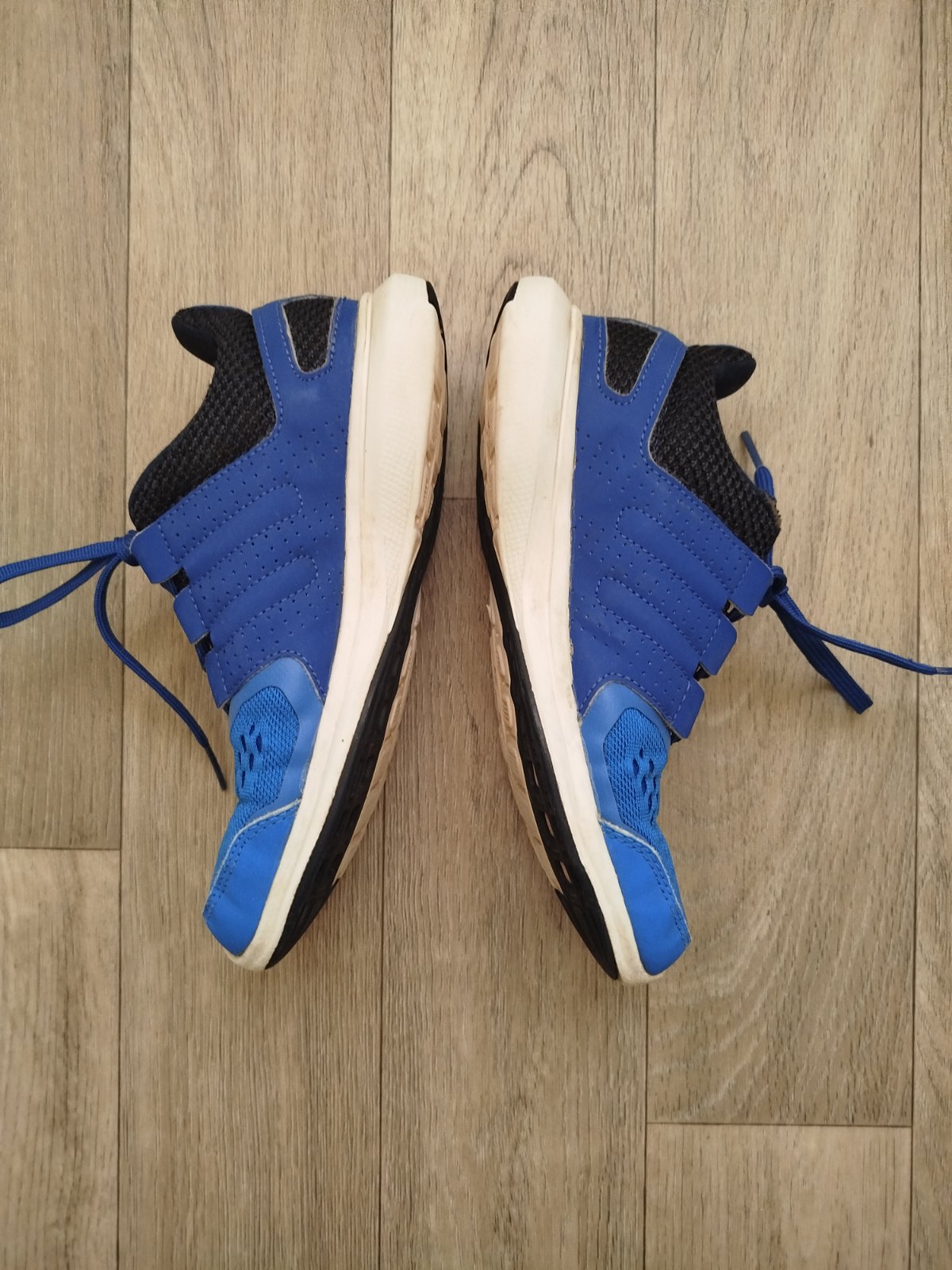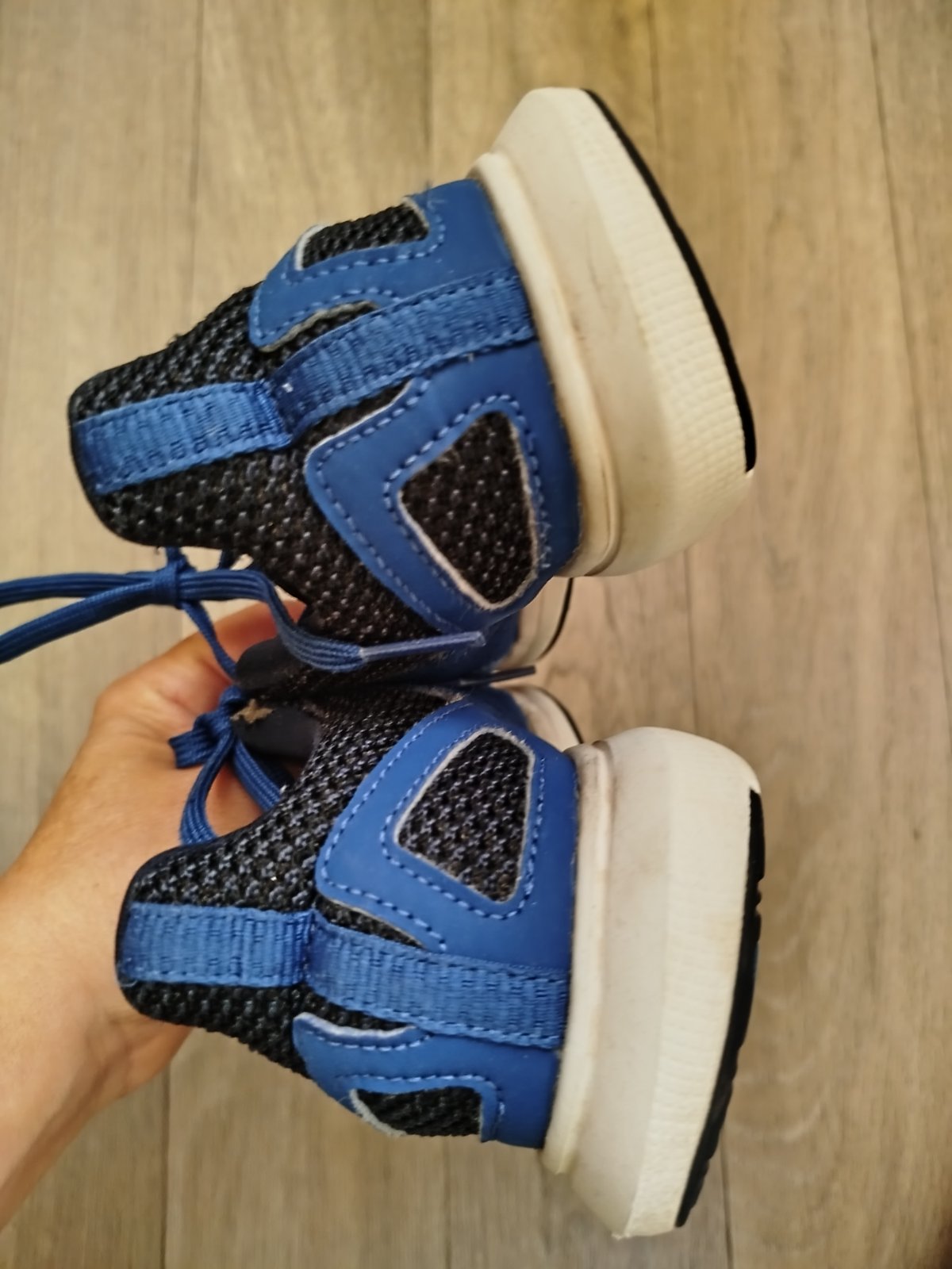 Tenisky po synovi nosené na telesnú výchovu. Dobrý stav. Na ľavej teniske z vnútornej strany jemne ošuchnutá látka. Nemá vplyv na funkčnosť. Šnúrky v poriadku. Pohodlné.