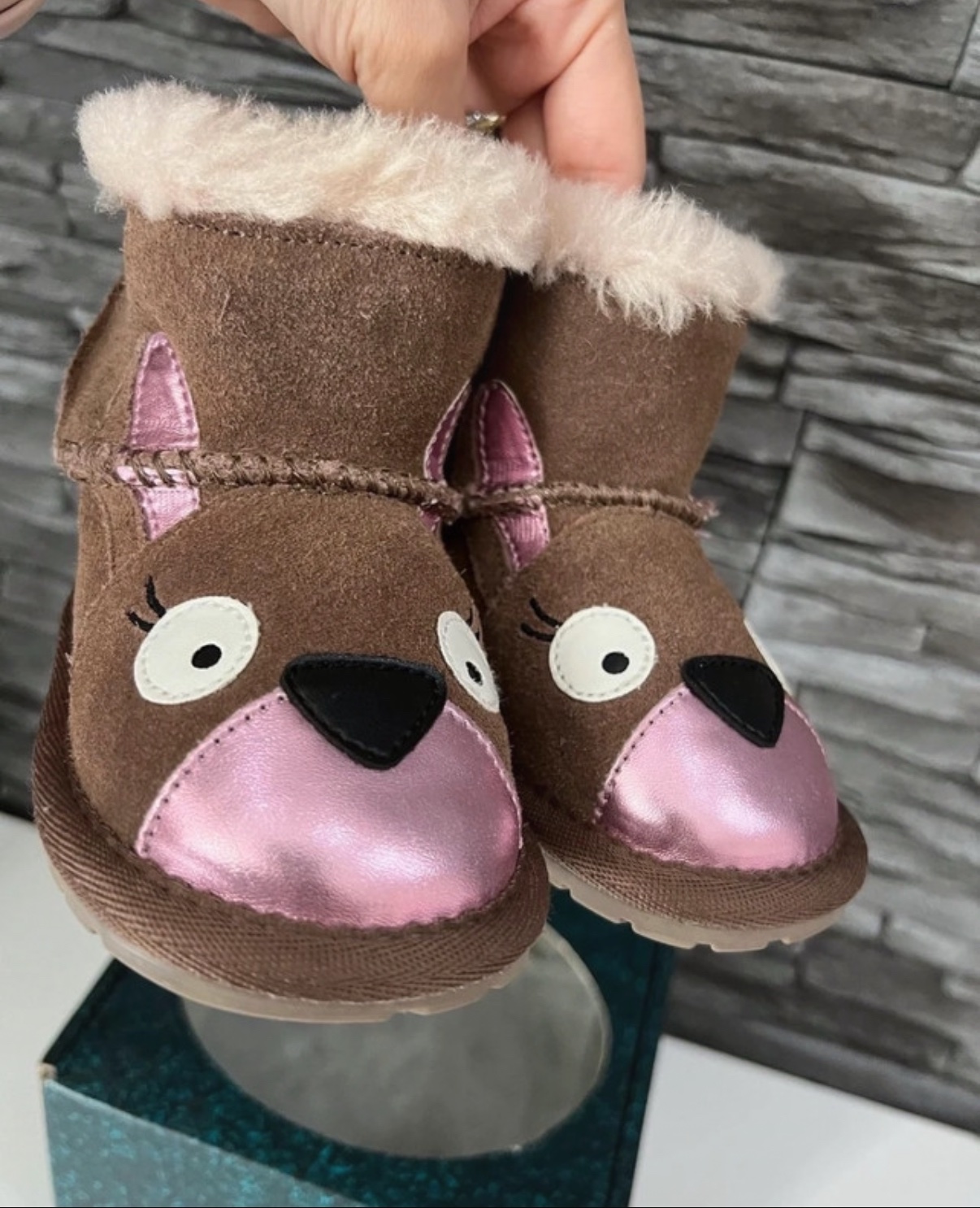 Uzasne kvalitne teplucke cizmicky s ovcou vlnou nemeckej zn. Fellhof, nase oblubene, lahko sa obuvaju a pekne drzia nozicky v teple, bez poskodeni, top stav vnut.dlzka cca 9 cm