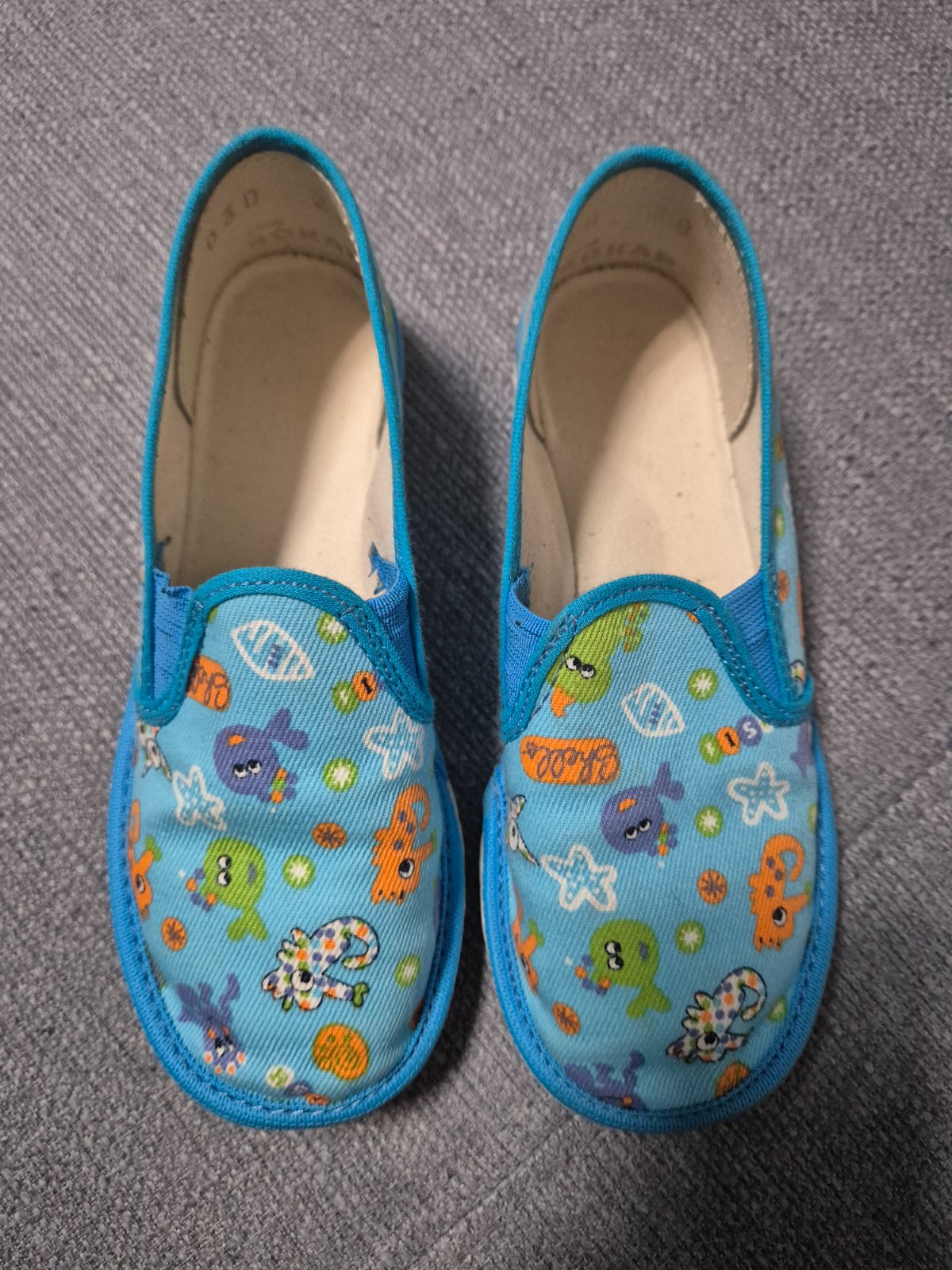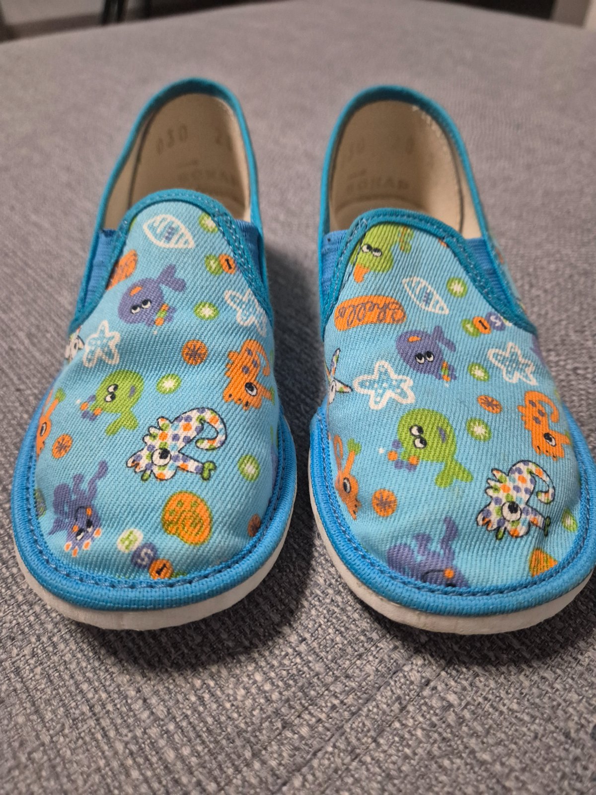Nosené papučky v škôlke, veľkosť je 28, vnútorná dĺžka 18,5cm. Zapínanie na suchý zips.