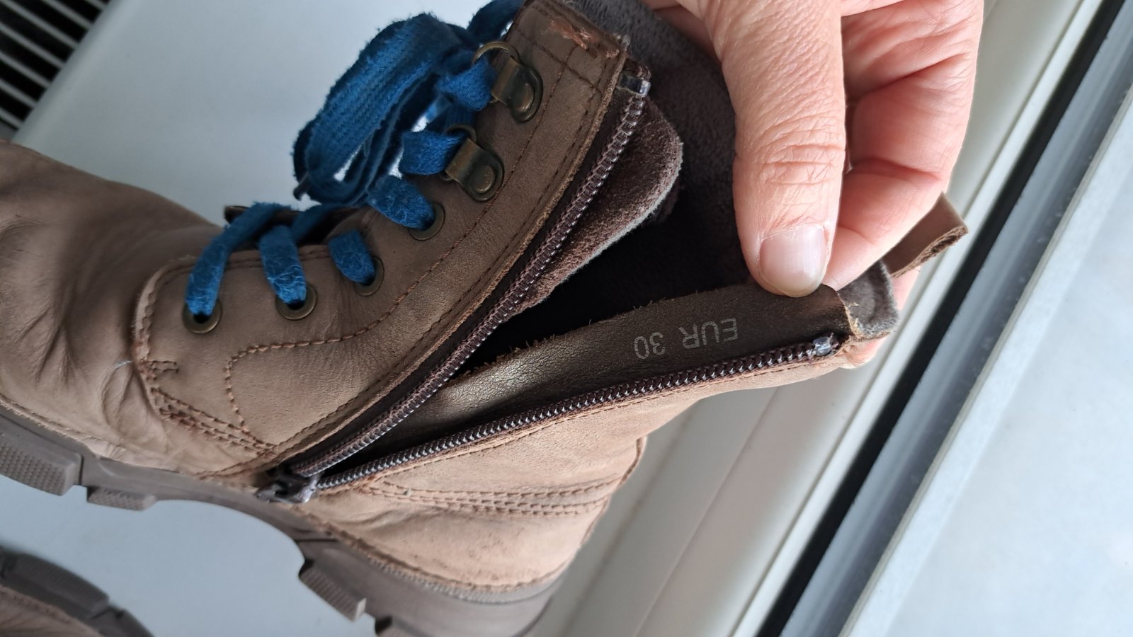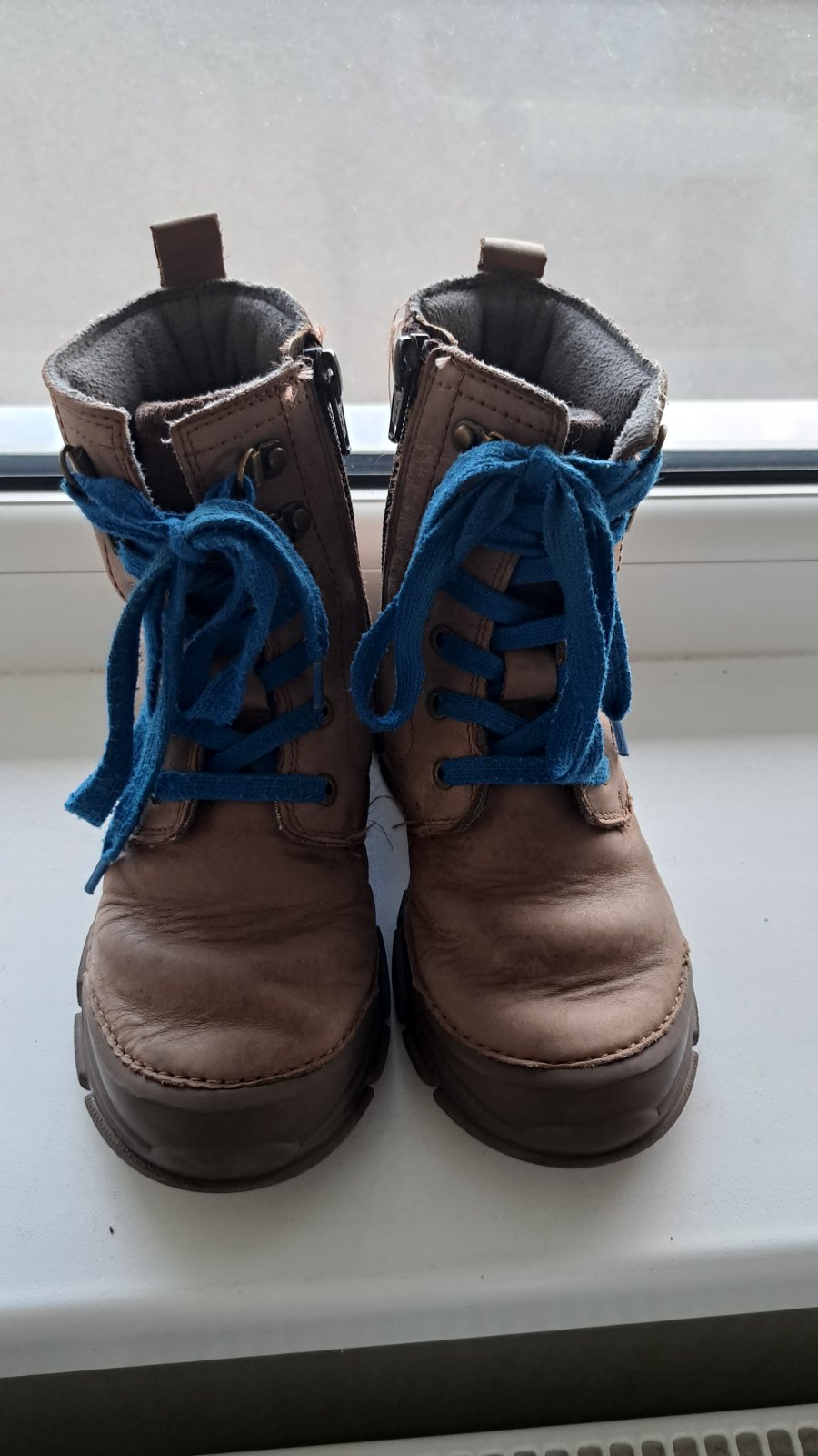 Zateplené kožené topánky, vhodné na jeseň aj miernejšiu zimu. Na koži vidno, že boli nosené, ale sú bez poškodenia a este urcite vedia posluzit.