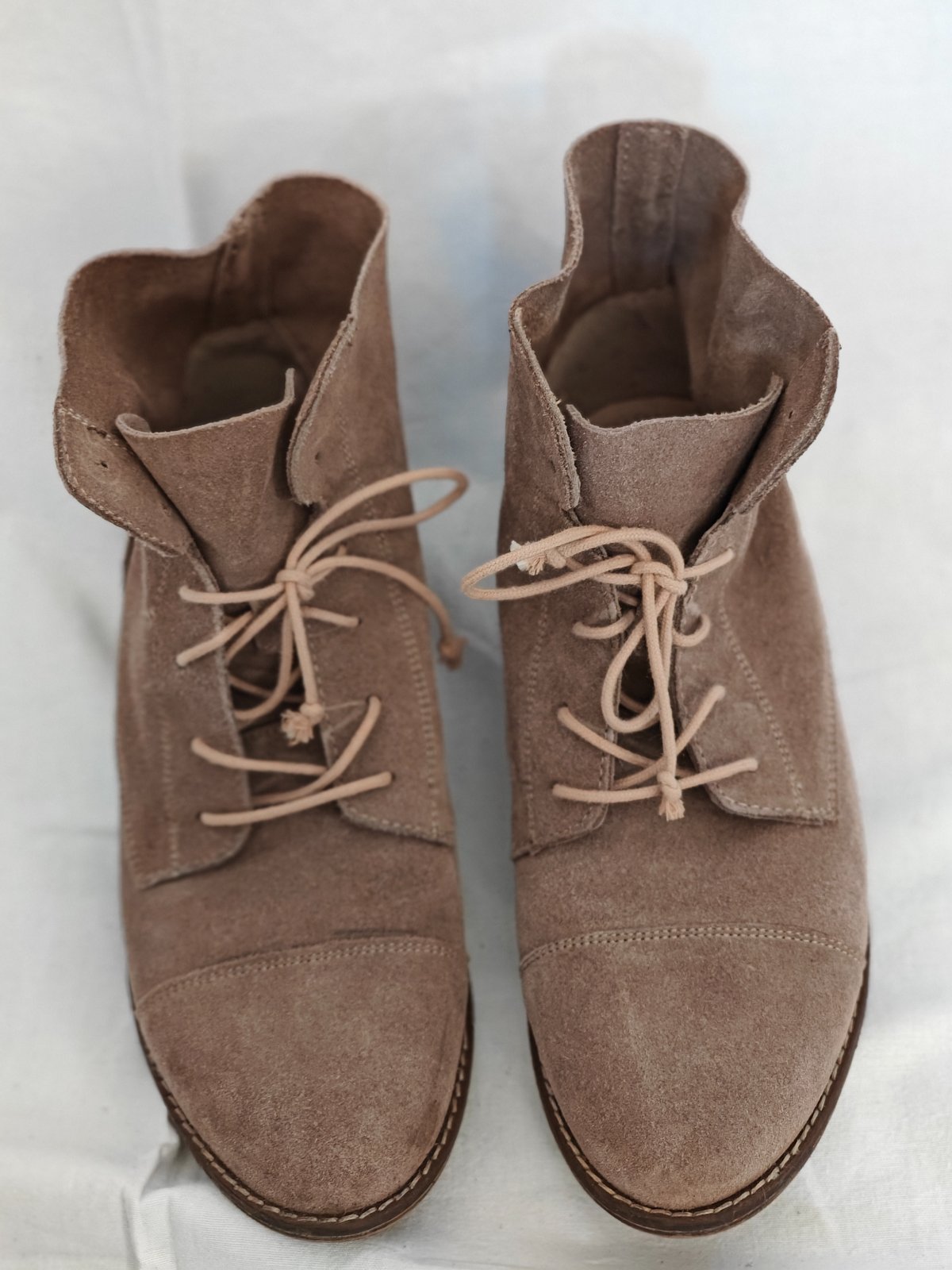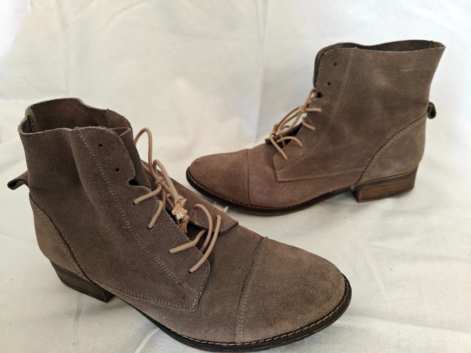 Dámske topánky na šnurovanie, ľahučké a pohodlné. Značka FRAICHE. Veľkosť 39. Veľmi dobrý stav. Pravá koža - velúr. Cena 11€ + pošta. Pozri si môj profil, možno nájdeš aj iné veci, ktoré sa ti hodia:)