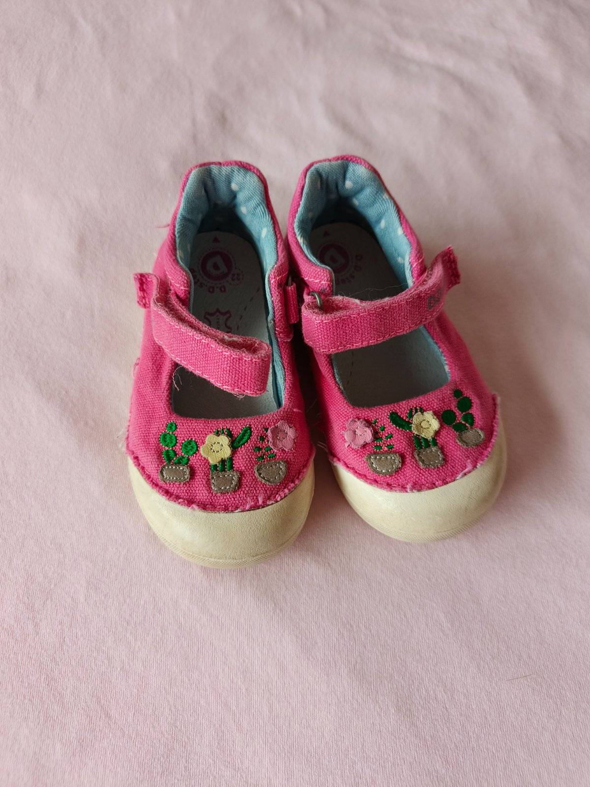 Predám dievčenské plátené balerínky veľ.22 vo veľmi dobrom stave, nosené občas doma ako papučky, VD viď.foto.