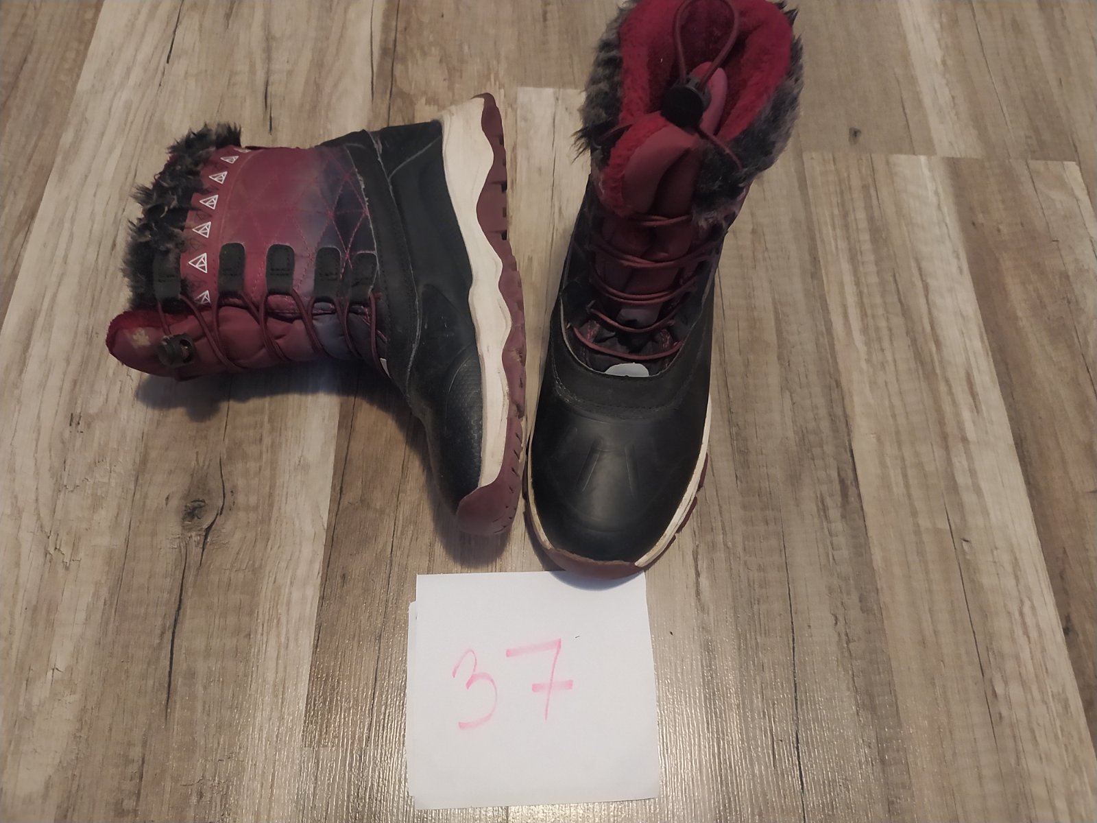 bez poškodenia, nosené 1 zimu na striedačku.. spodná časť pogumovaná- super do čľapkanice a na mokrý sneh veľkosť 37, vnútorná dĺžka nadoraz 24cm
