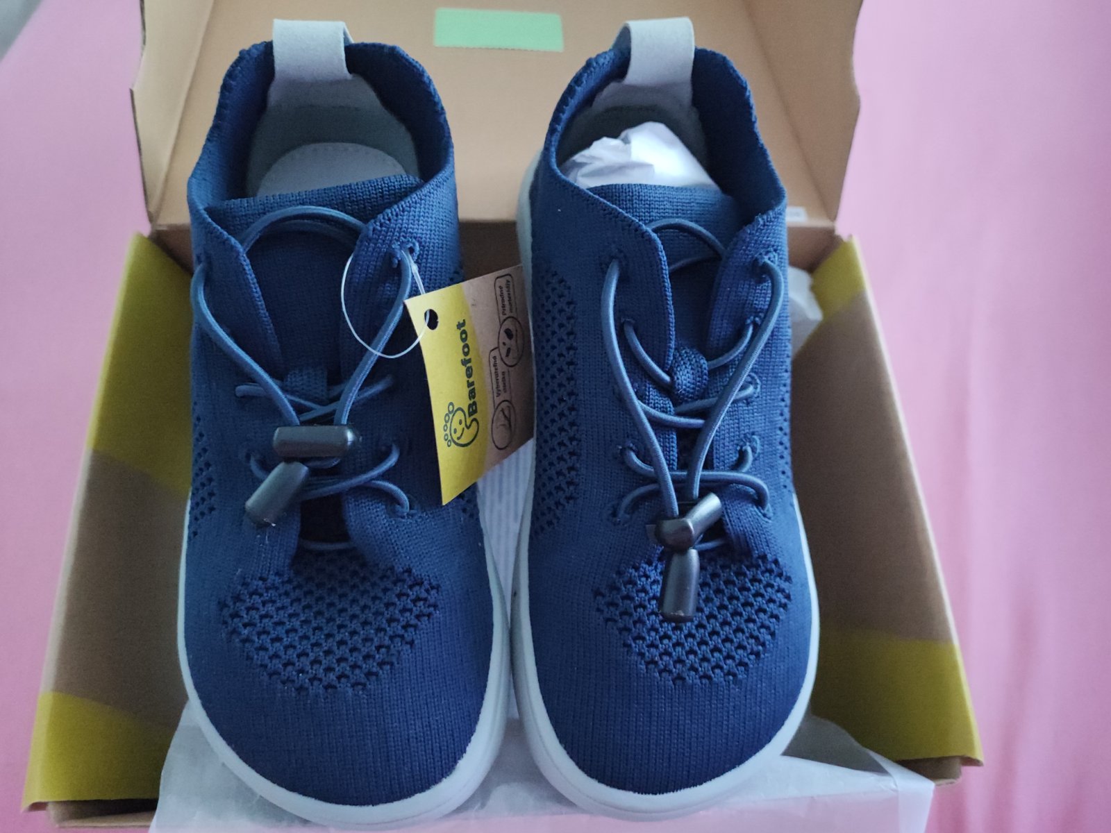 Nové barefoot tenisky, kúpené na telesnú. Žiaľ, malému počas leta podrástla noha viac ako o číslo a už sú mu malé.