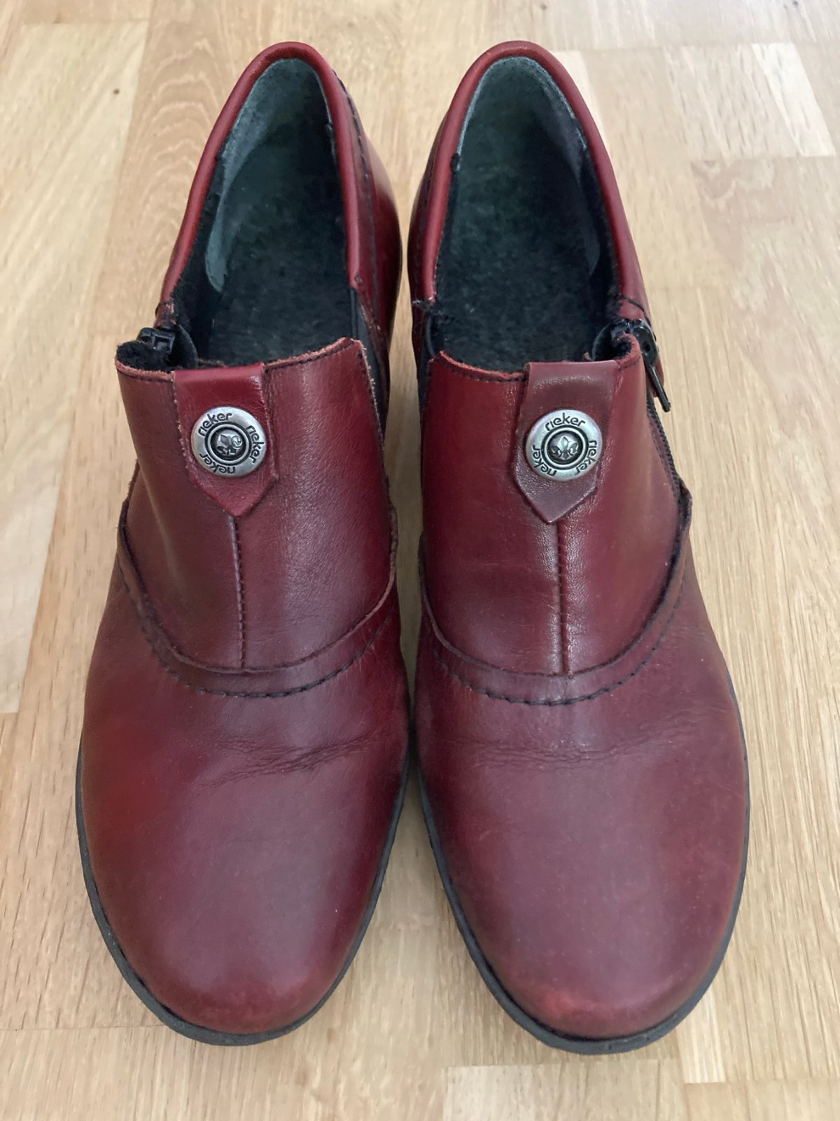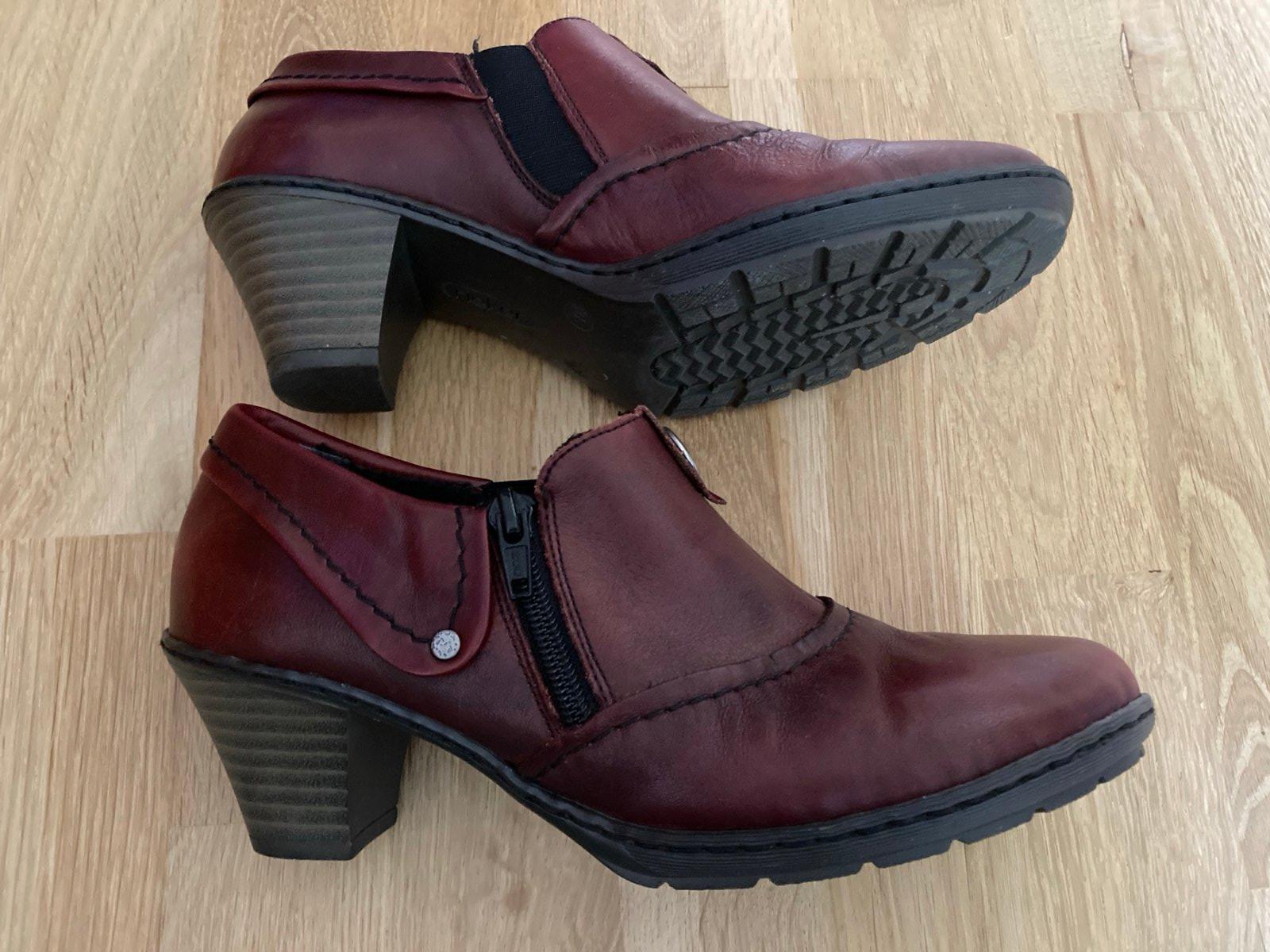 Posúvam (už musím nosiť len širokú špičku) značkové kožené topánky Rieker. Výborný stav, ľahké, ohybná podrážka, príjemná výška opätku. Farba bordovohnedá, na priehlavku pás gumy aj zips pre ľahšie obúvanie. Neokopané, nezodraté, obuté len párkrát. Symbolická cena.