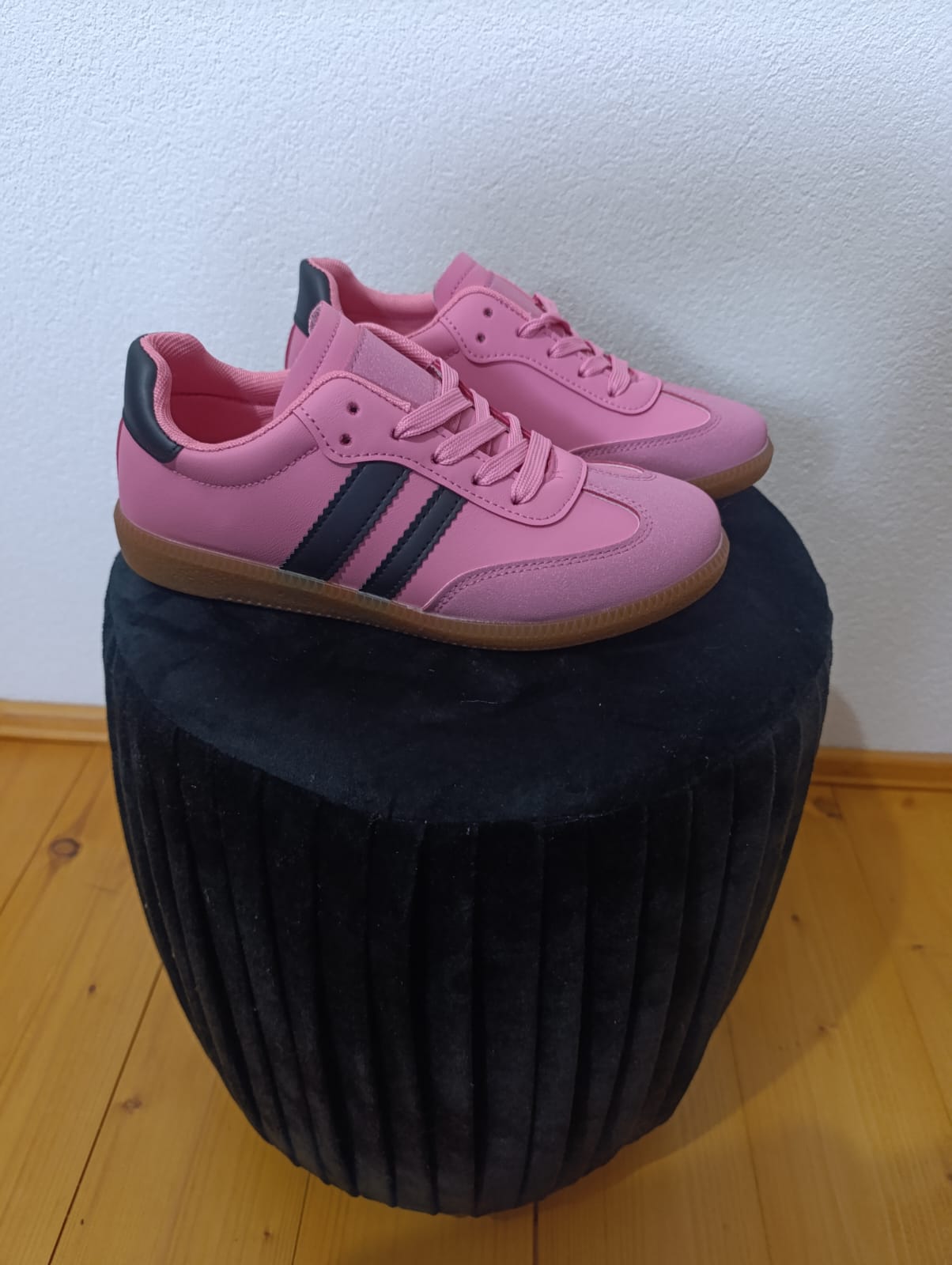 Ružové tenisky na šnurovanie s čiernymi pásikmi