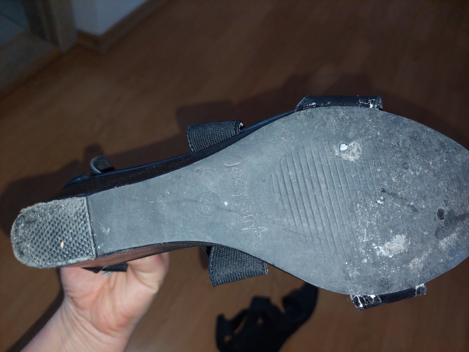 Krasne sandaljy na plnom klinovom podpatku. Pasy su elasticka guma cize kludne na chudu aj na hrubsiu nohu. Kupene v CCC obute 2x na svadbu.