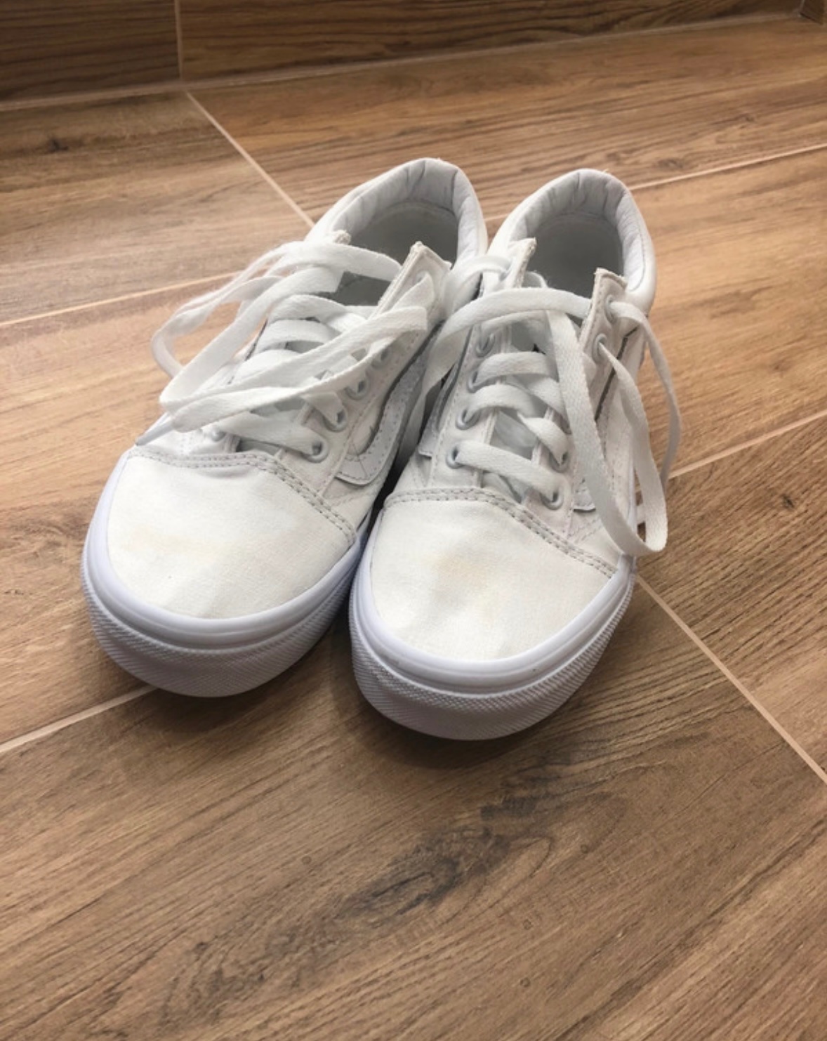 Biele tenisky Vans velk.34, vpredu žlté fľaky nič hrozné pri bežnom noseni nie je vidieť von. dĺžka 21cm