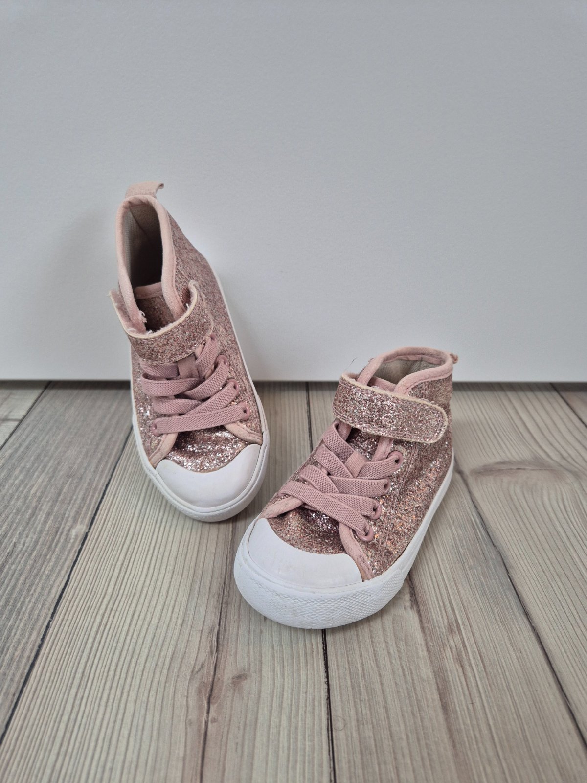 Tenisky značky H&M s trblietkami, veľkosť 24. Známky bežného používania. V prípade záujmu môžem premerať aj dĺžku vnútornej stielky.