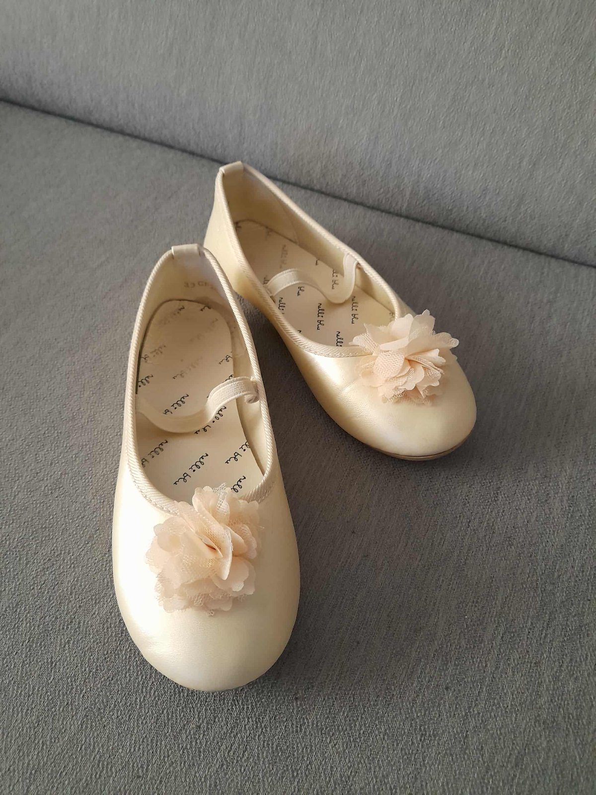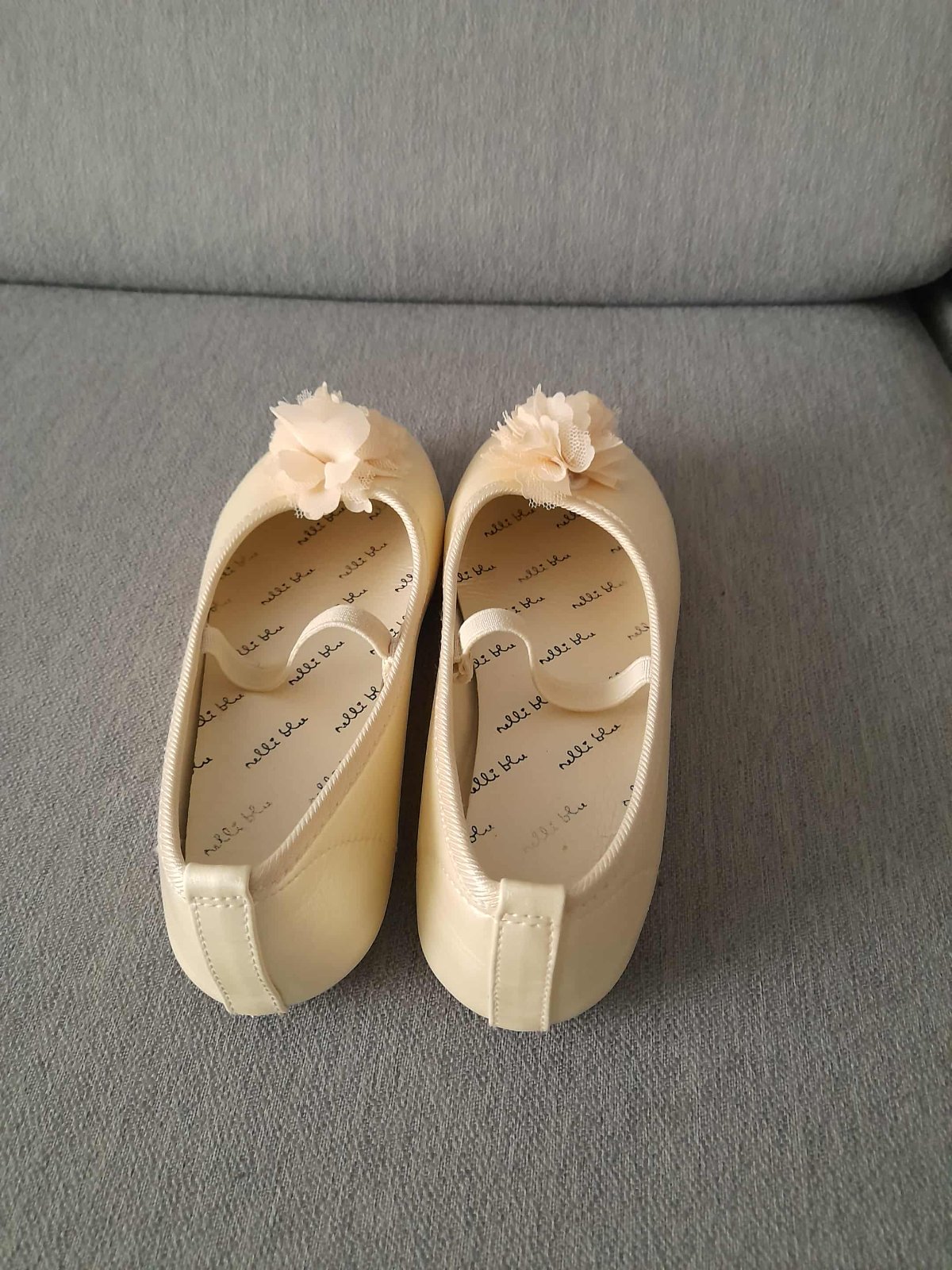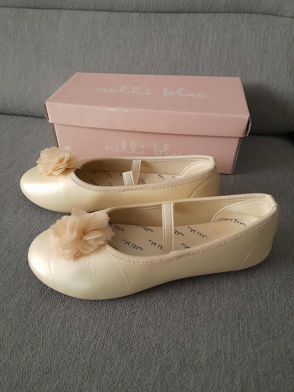 Krásne snehobiele balerínky značky Nelli Blue vo veľkosti 33 obuté jedenkrát na 1. sv. prijímaní. VD 21 cm...