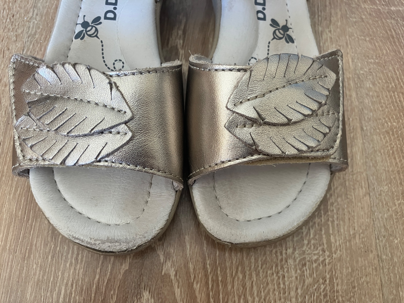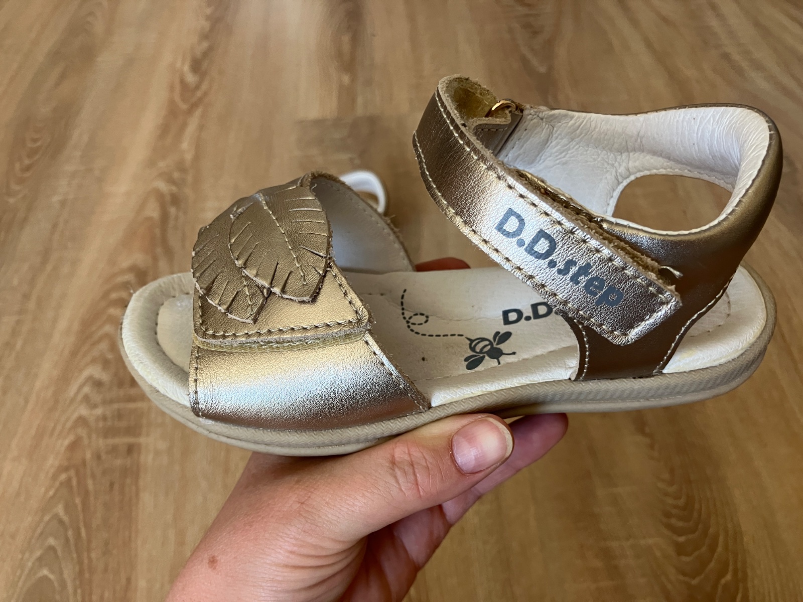 Predám sandálky D.D.Step zlatej farby . Sandálky sú málo nosené no napriek tomu sa dcére podarilo šuchnúť špičky . ( nafotené, zohľadnené v cene ) Inak sú sandálky veľmi zachovalé .Cena