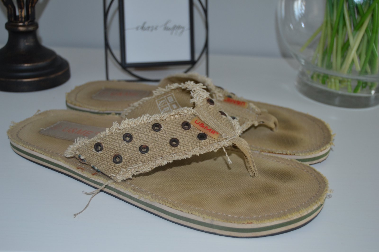 Pánske žabky U&ME, značky Humanic, béžovej farby, materiál textil, veľkosť 45.