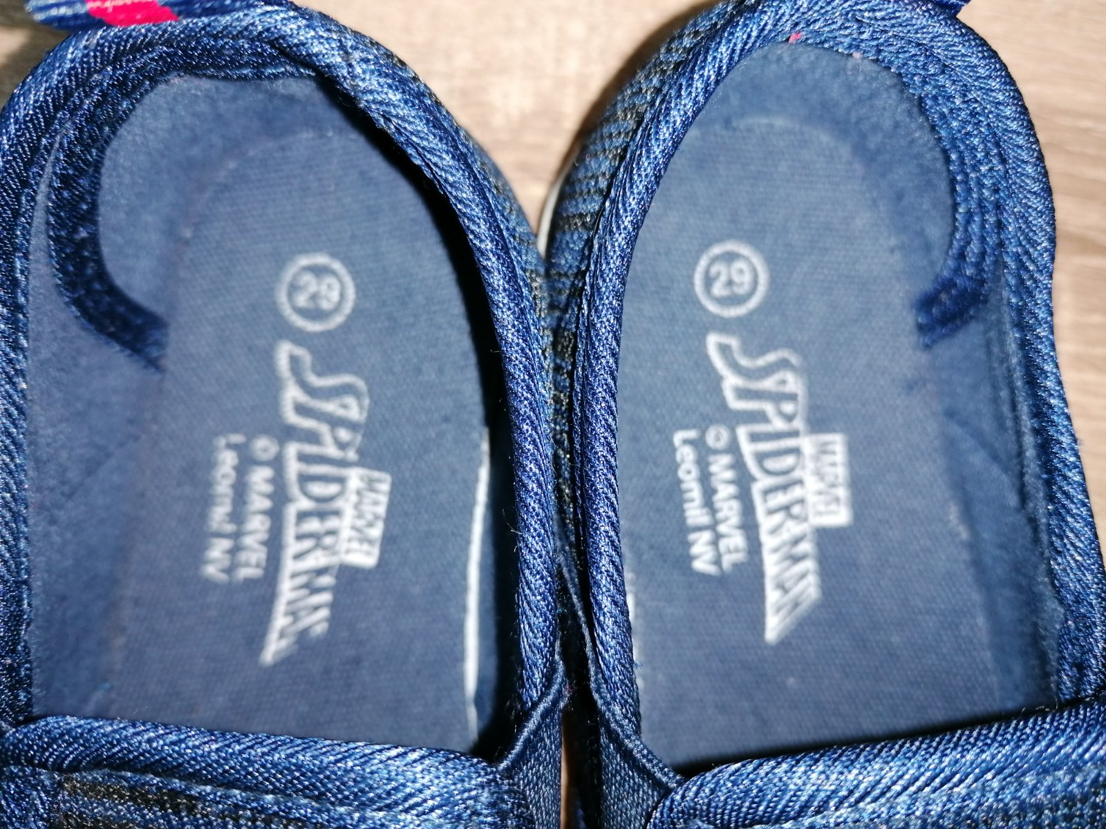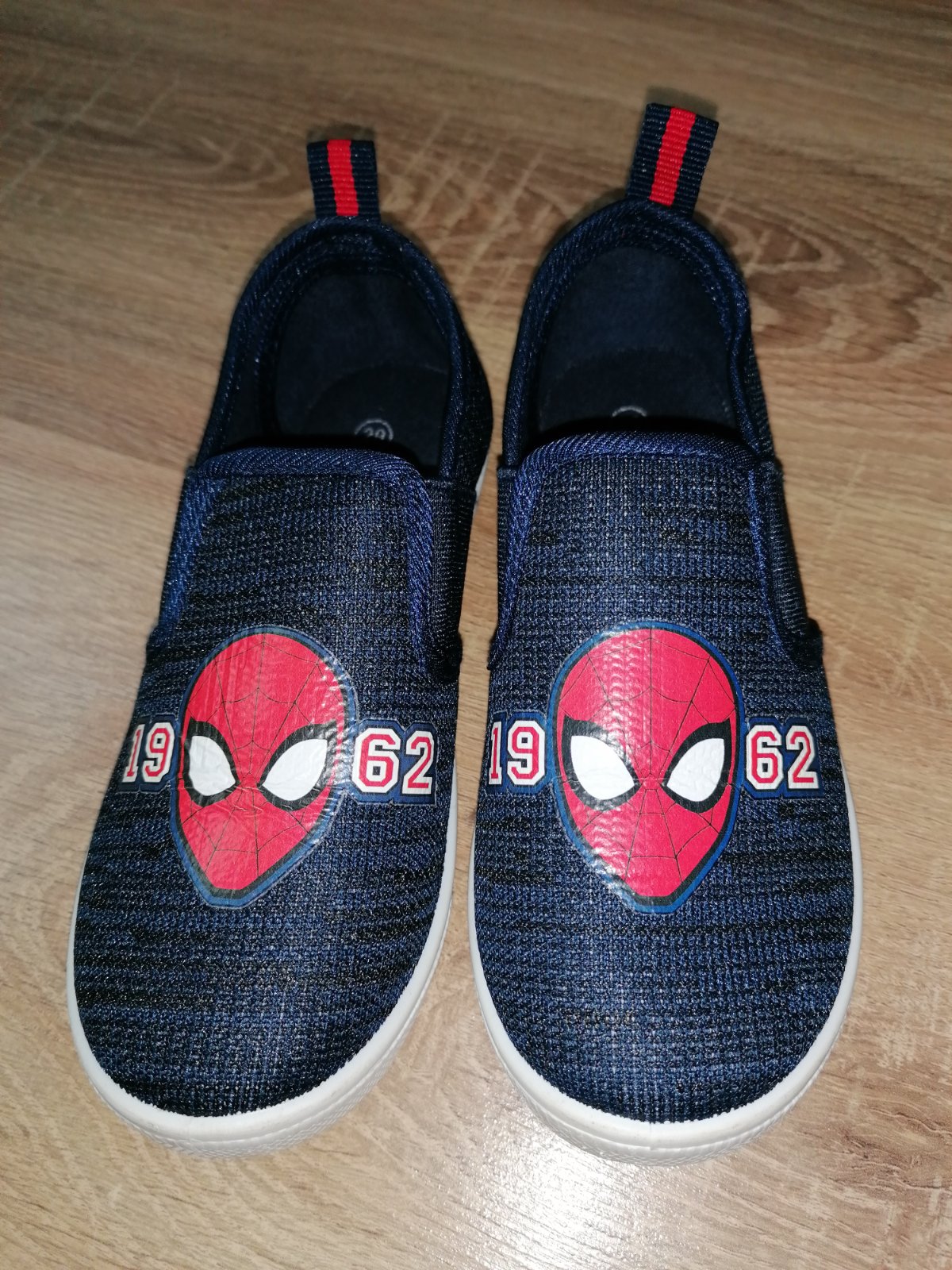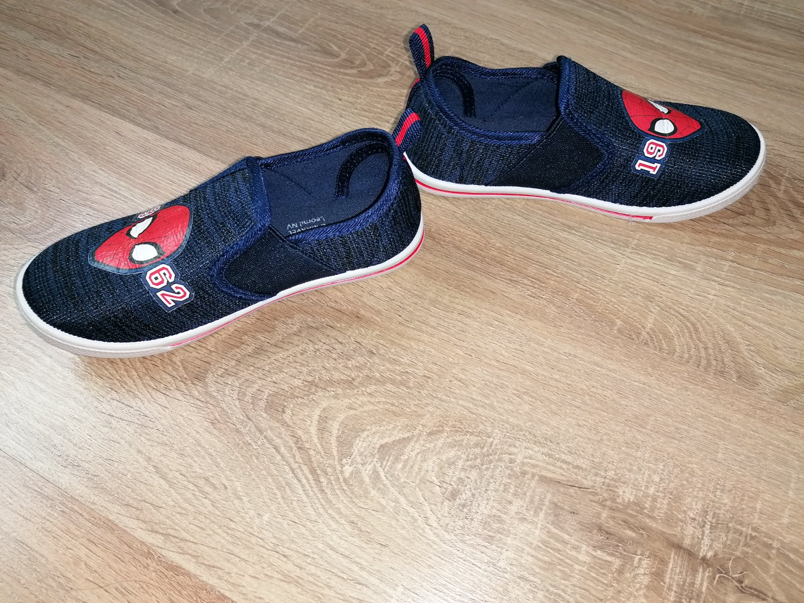 modro červené papučky, velkost 29, vnútro cca 18 cm, nosené asi 2 mesiace v skolke, bez poškodení