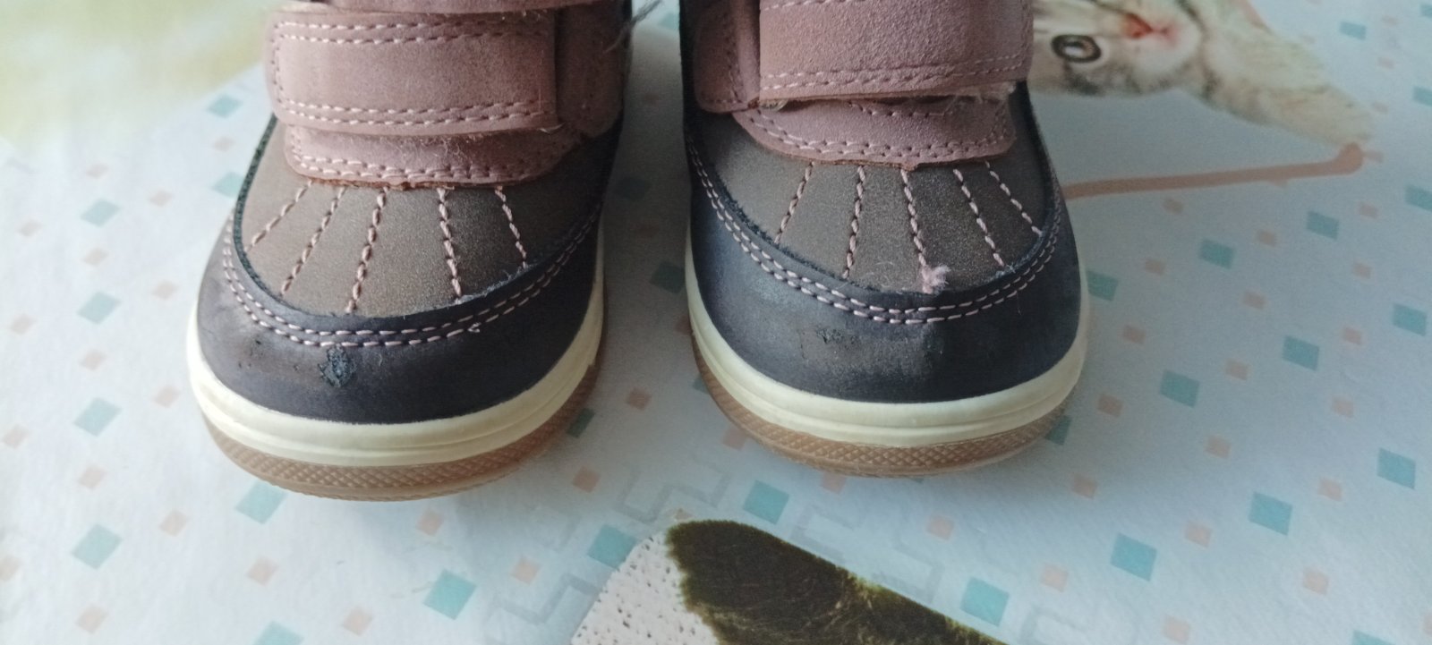 Predám v peknom stave zimné topánky pre dievčatko, ľahké, ohybné, veľmi dobre sa nosili. Vpredu je špička trošku šuchnutá, ale nakoľko je to čierne, nie je to vidno. Chutná dĺžka cca 11 cm.