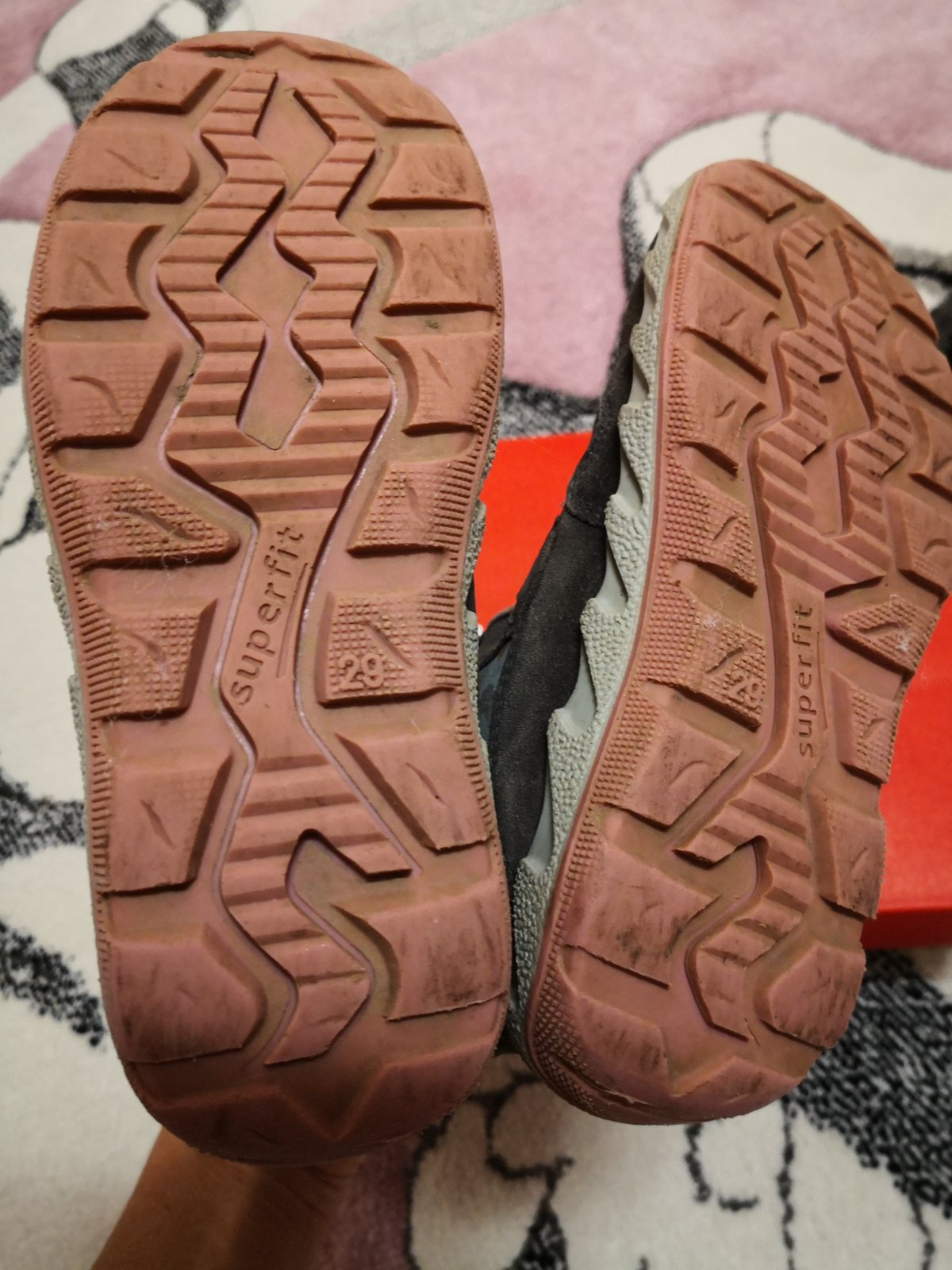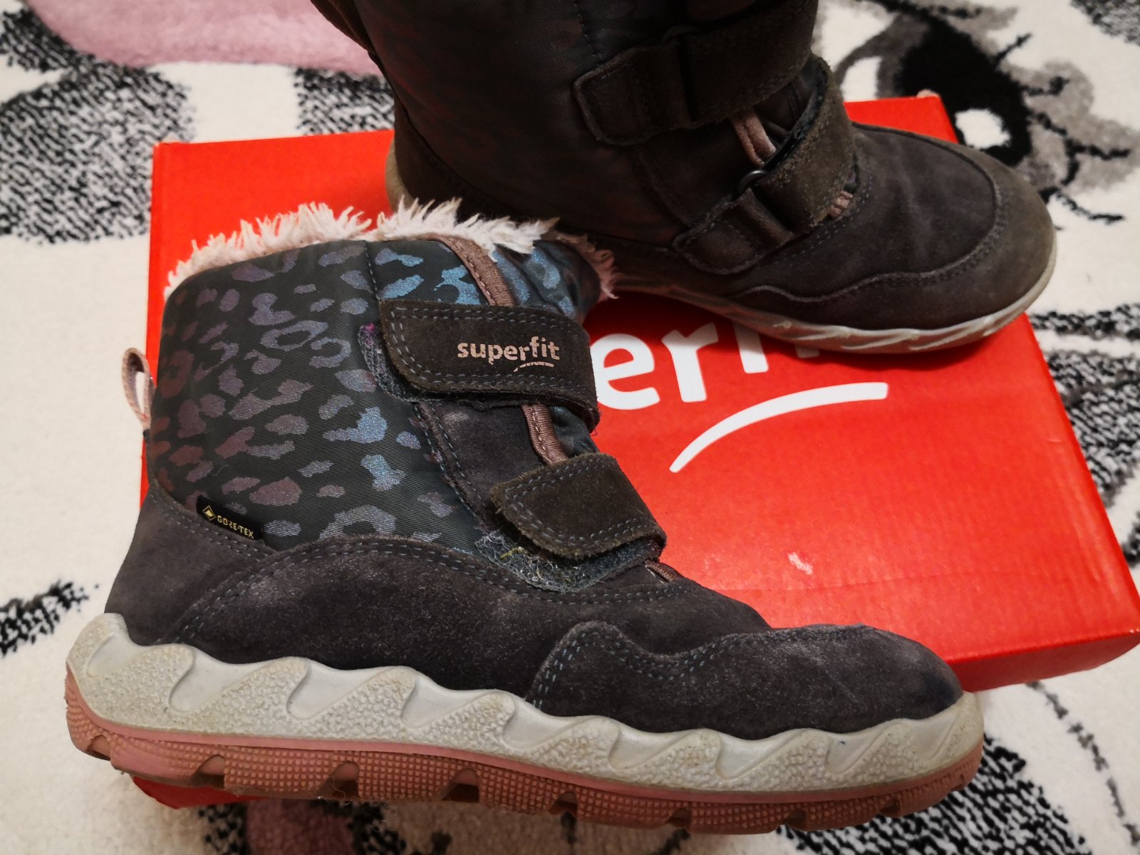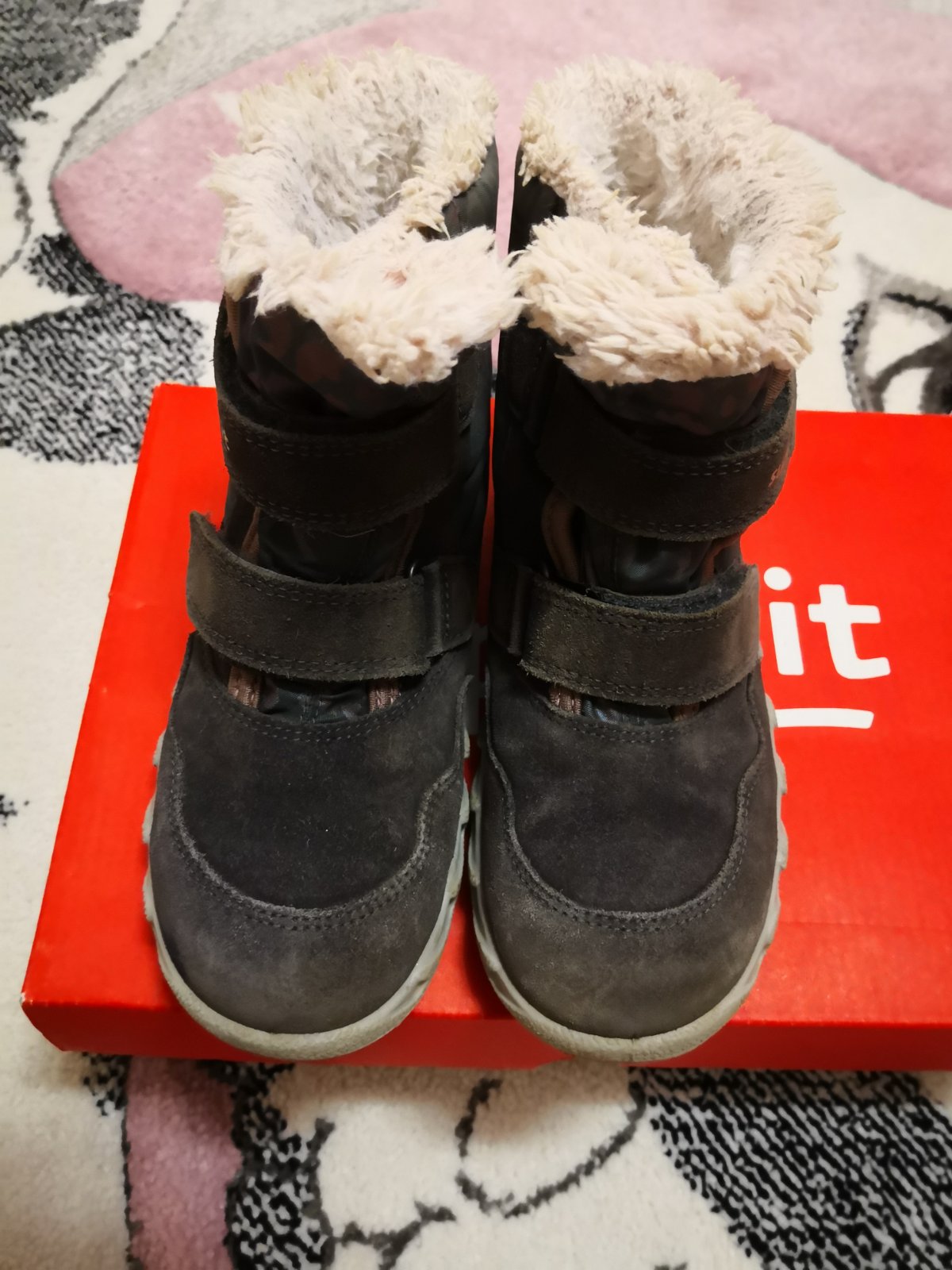 Predám nosené čižmy, zn. Superfit, veľkosť 29, dĺžka stielky 19 cm. Spodná časť brúsená koža, nepremokavé, s gore-tex membránou. Obúvajú sa zvrchu, sú bez zipsu, čiže nenatečie do nich ani v pľačkanici.