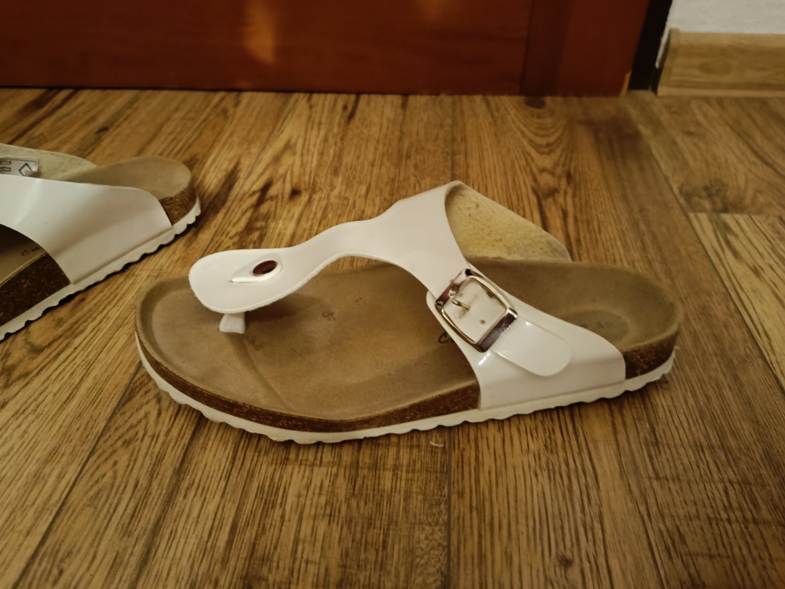 Ponúkam doma vyskúšané nove kožené šľapky. Pekne sedia na nohe. Pravá koža. Sú mi malé. Číslo 40, vnútorná dĺžka 25,5. Pôvodná cena 45 eur.