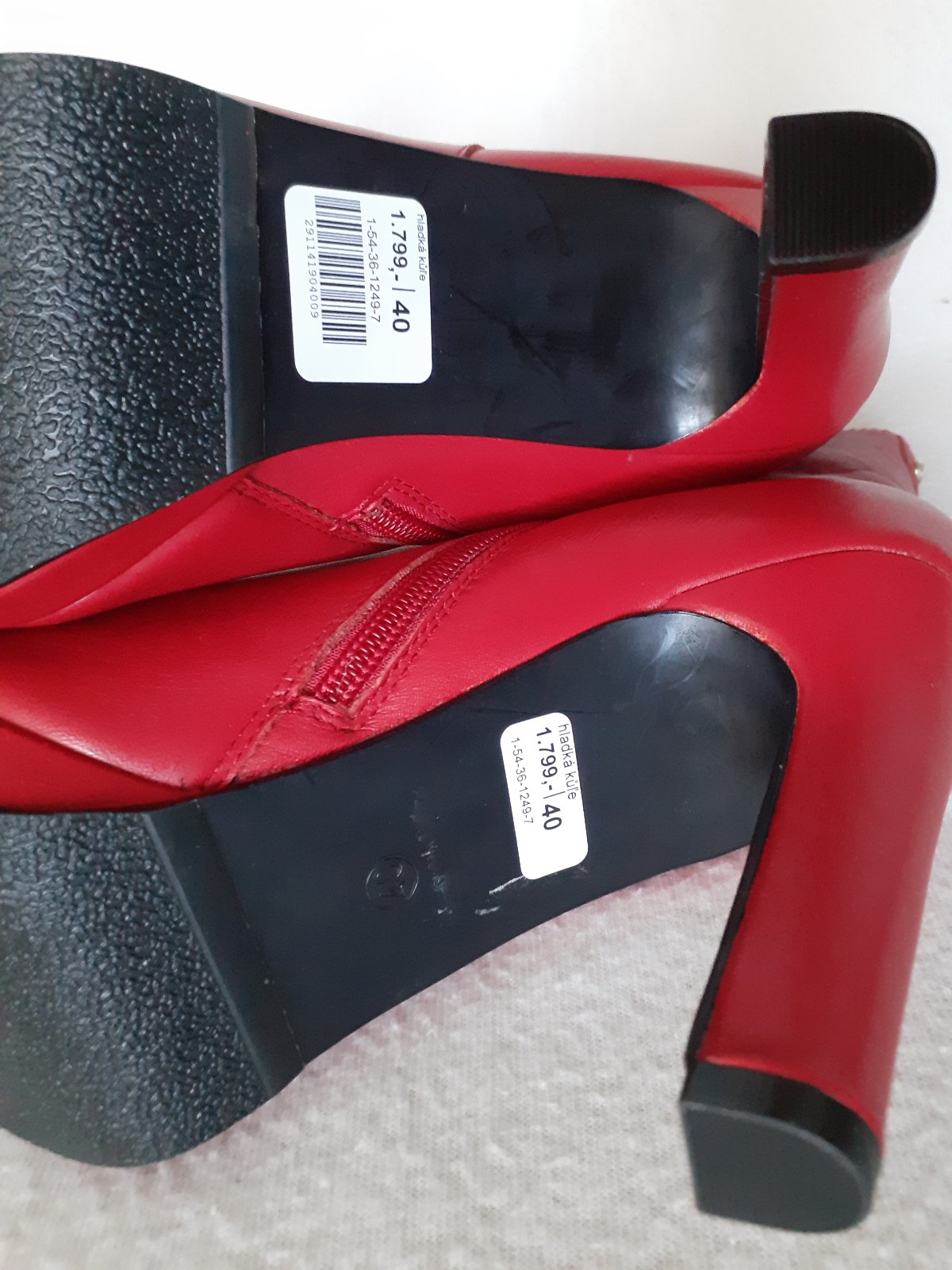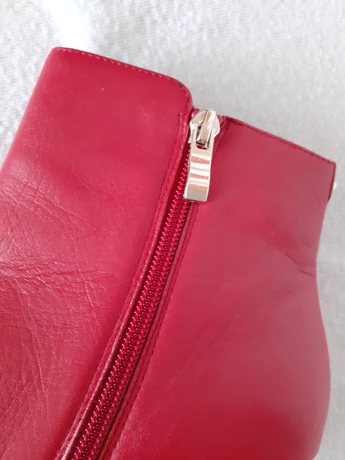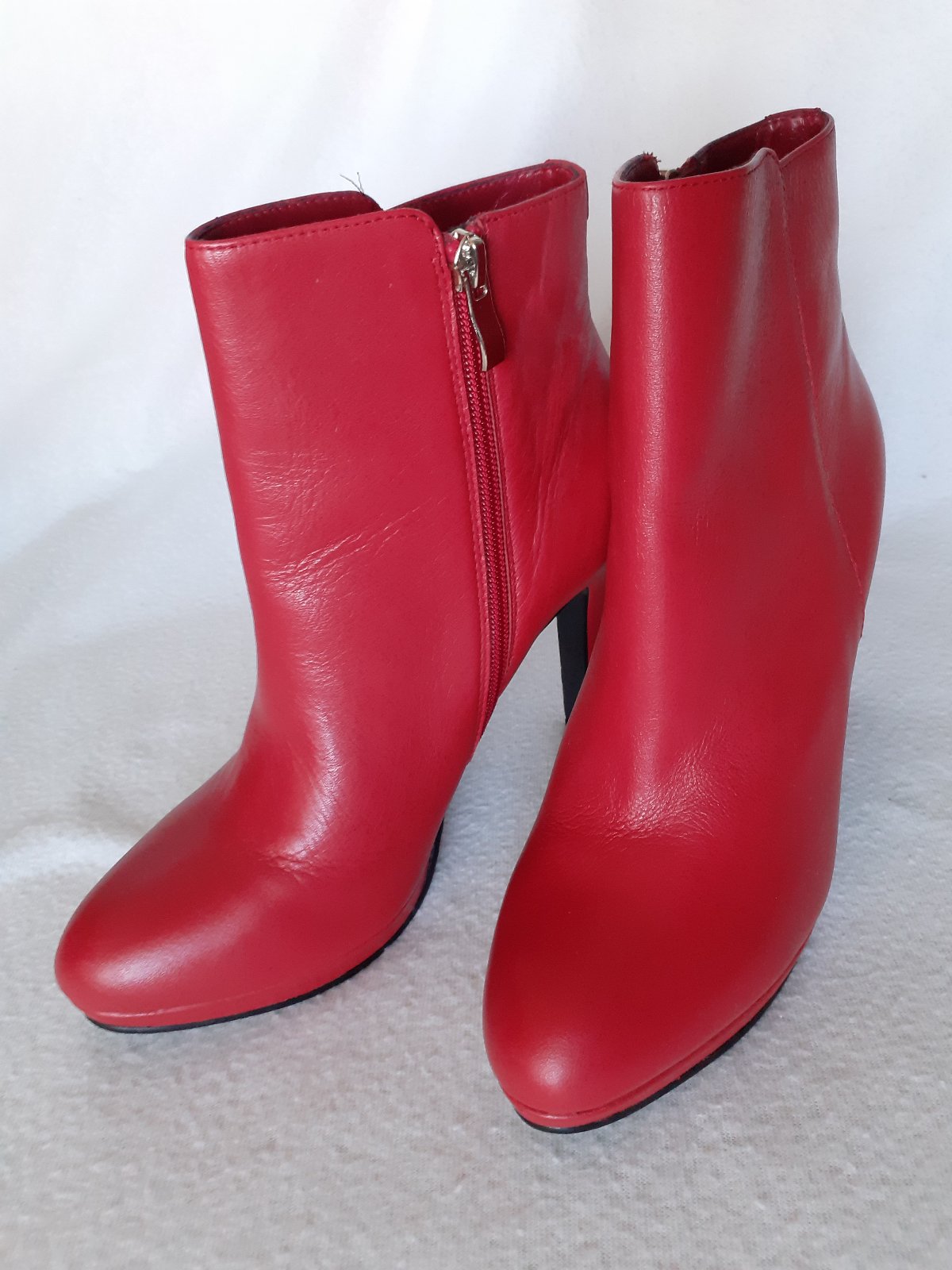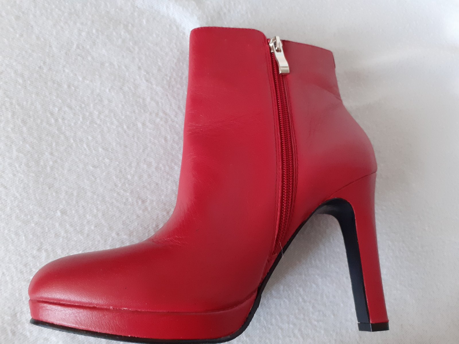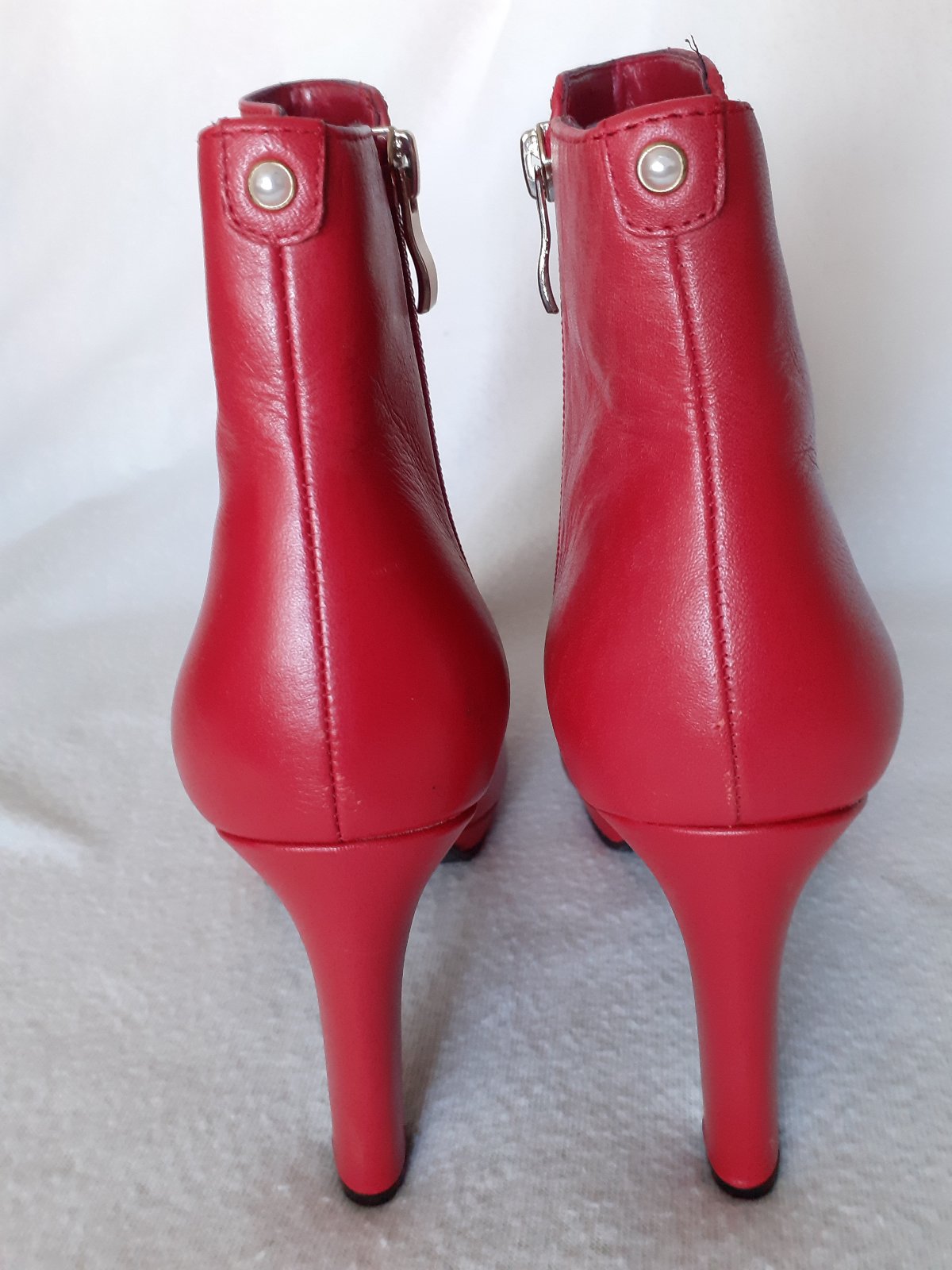 Predám červené dámske nízke kožené čižmy (čižmičky) značky Kate Gray veľkosti 40. Čižmy sú úplne nové, nenosené. Nameraná vnútorná dĺžka je 25,5cm. Pôvodná cena bola oveľa vyššia - viď. foto. Cena 10e + poštovné.