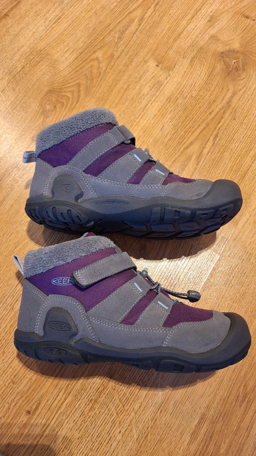 Detská zimná členková topánka KEEN Knotch Chukka z kvalitnej kože v semišovej úprave vychádza z obľúbených detských modelov KEEN Knotch a prináša osvedčenú nízkoprofilovú konštrukciu s minimálnym dropom. Technológia KEEN.WARM so 100 g izolácie udrží detské nohy v teple až do -20 °C. O vyšší tepelný komfort sa navyše postará ešte fleecová podšívka. Tvarovaná klenba podporuje strednú časť chodidla. Stabilitu a vynikajúcu trakciu zaisťuje TPR podošva a viacsmerná vzorka podrážky s výstupkami. Bočné podpery navyše pomáhajú držať členok a pätu. Deťom sa topánky ľahko obúvajú vďaka šnurovaciemu systému s lankom a nastaviteľnému popruhu cez priehlavok.
