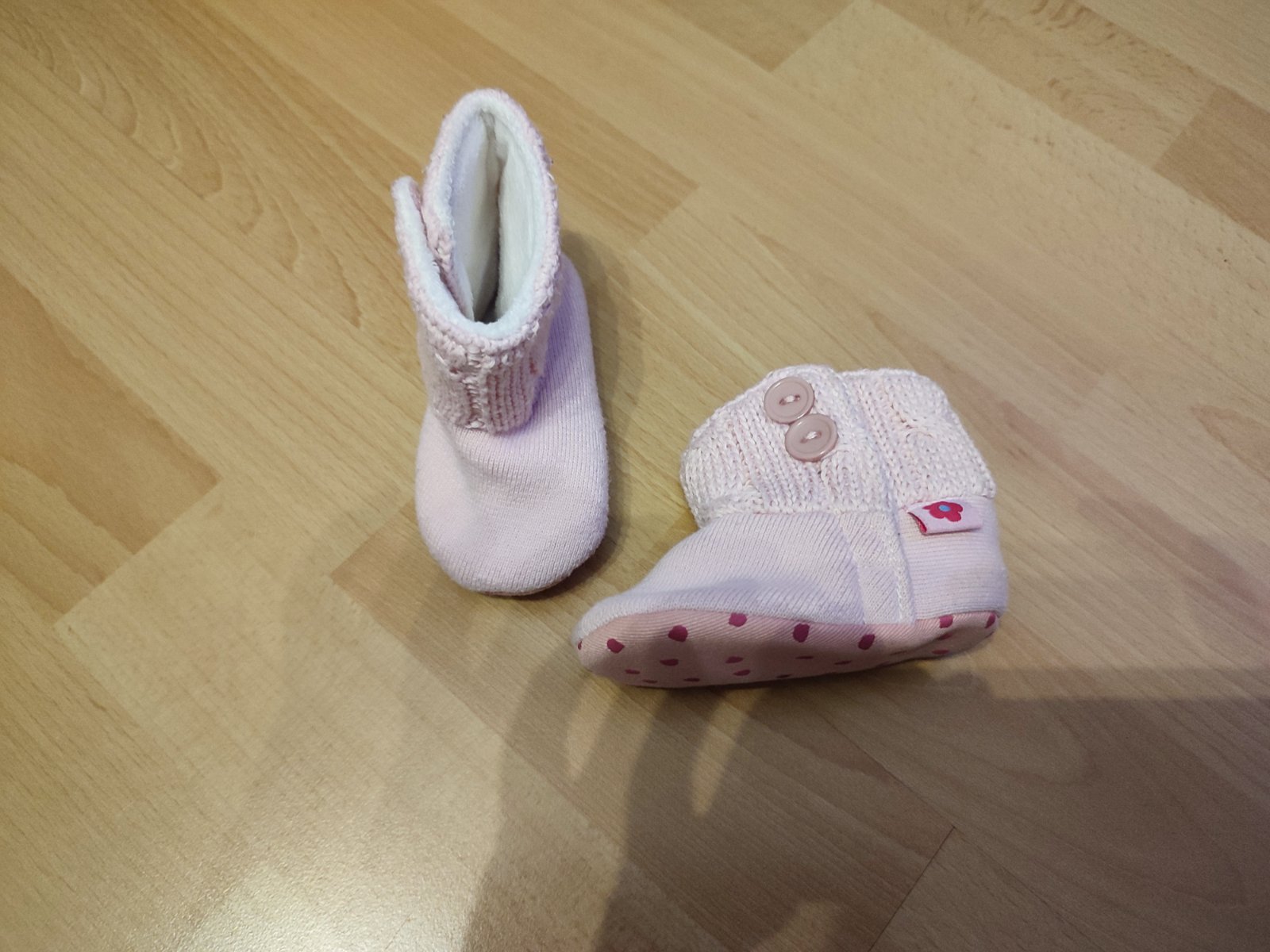 Úplne nové capačky, ružové so srdiečkami, veľkosť 0-6m, vnútorná dĺžka 10cm. My sme na ne zabudli, a už sú dcérke malé 🙈