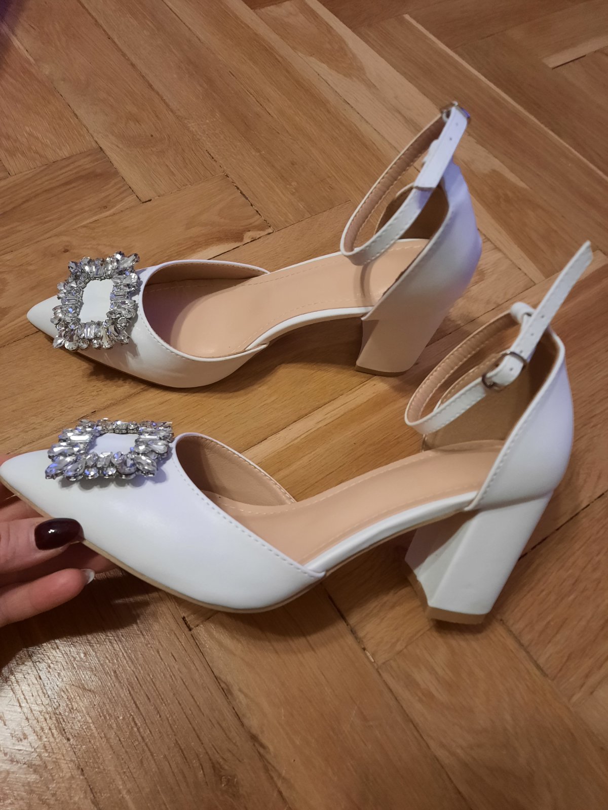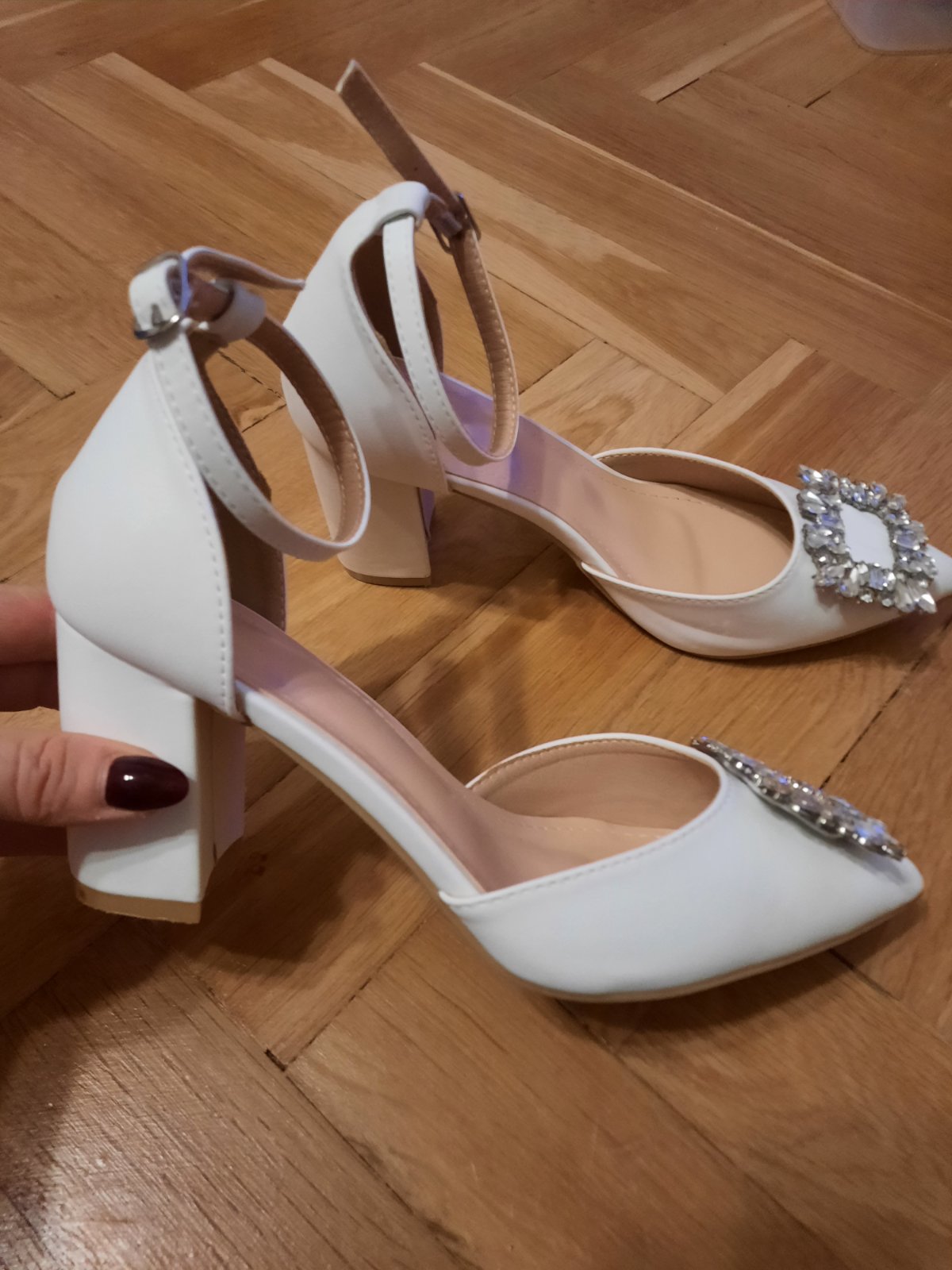 Biele sandalky s kamienkovou sponou