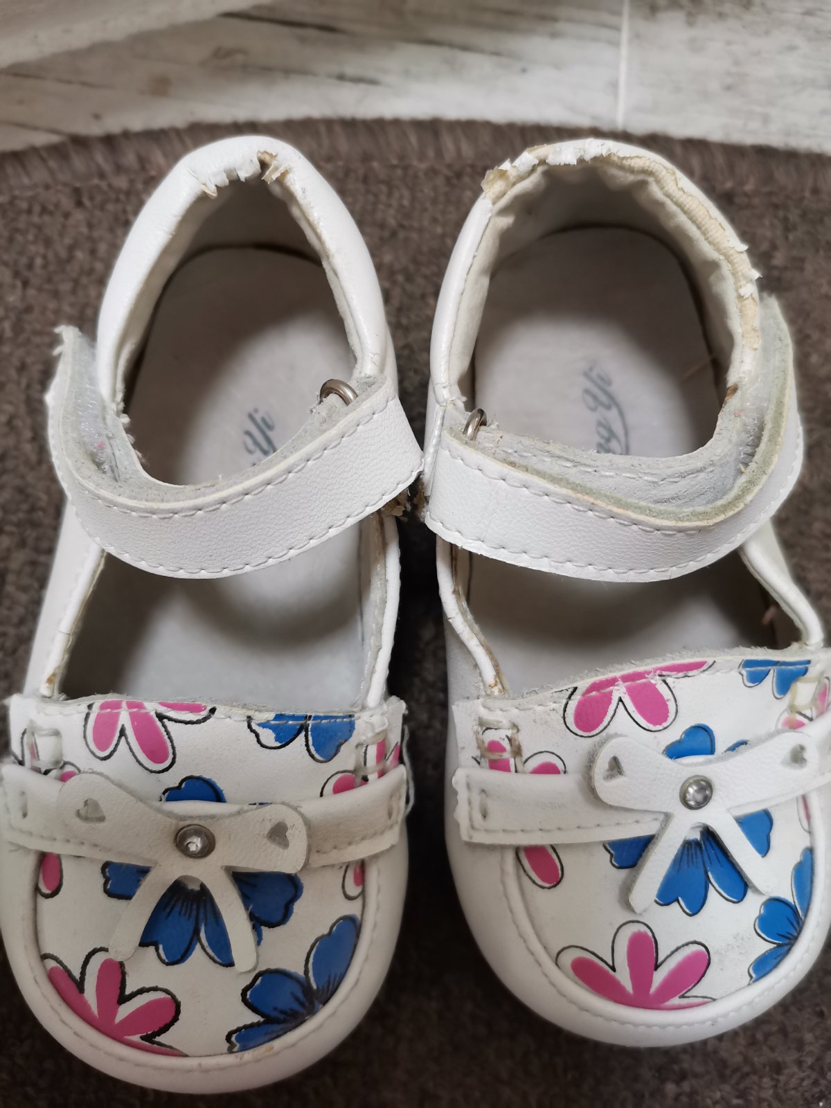 Nosené, no stále pekné dievčenské sandálky. Na päte sa mierne lúpu, viď foto.