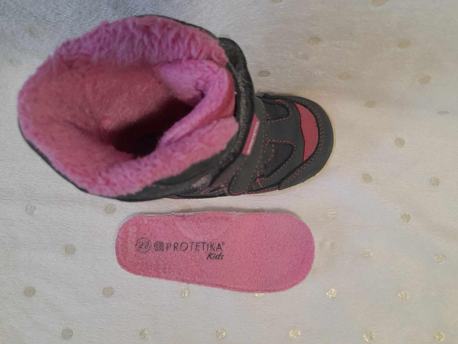 Predám krásne teplé zimné topánky zn. Protetika model Fari Denim pre dievčatko. Boli používané jednu zimu. Sú veľmi teplé a vyššie do polovice lýtka. Ideálne do snehu aj na suchú zimu. Na ľavej topánke je trocha odretá koža, viď foto. Inak bez poškodení.