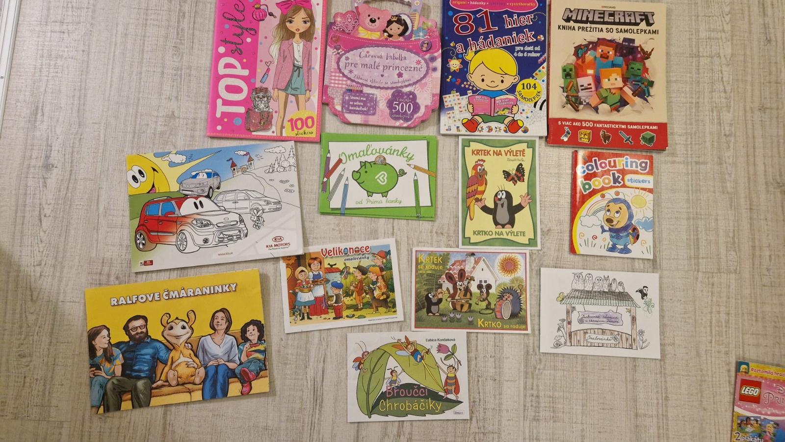 Omalovanky, knihy s nalepkami, aktivitami