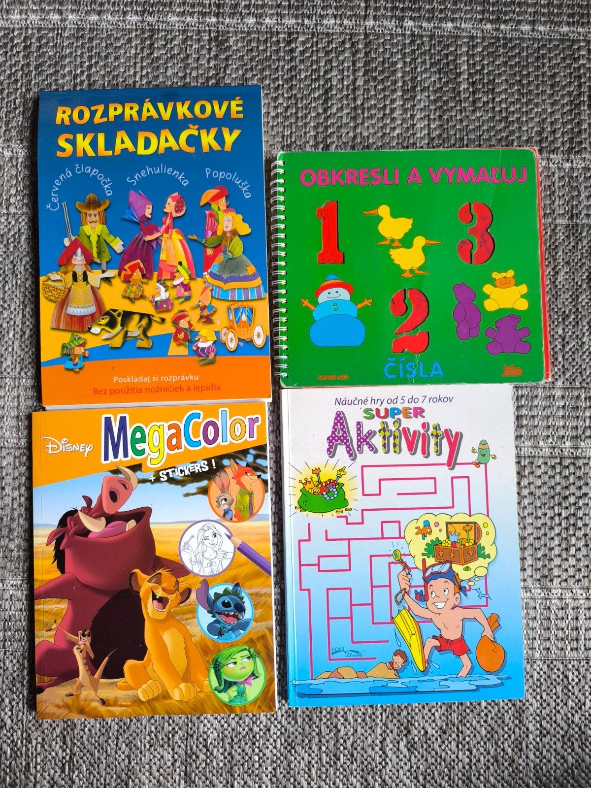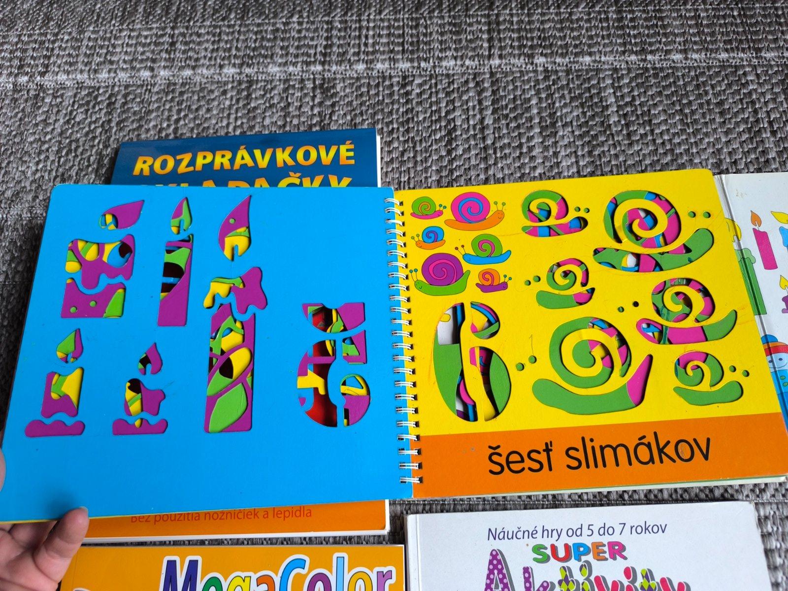 Zábava a učenie v jednom. Zbierka kníh s aktivitami, omaľovánky, papierové skladačky, šablóny na obkresľovanie.