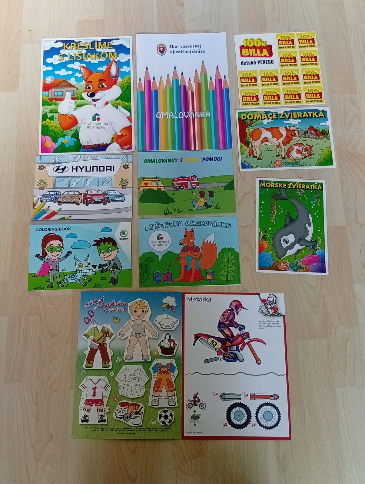 1x pexeso, 1x vystrihovačka a 8x omaľovánky, niektoré s úlohami a hlavolamami.